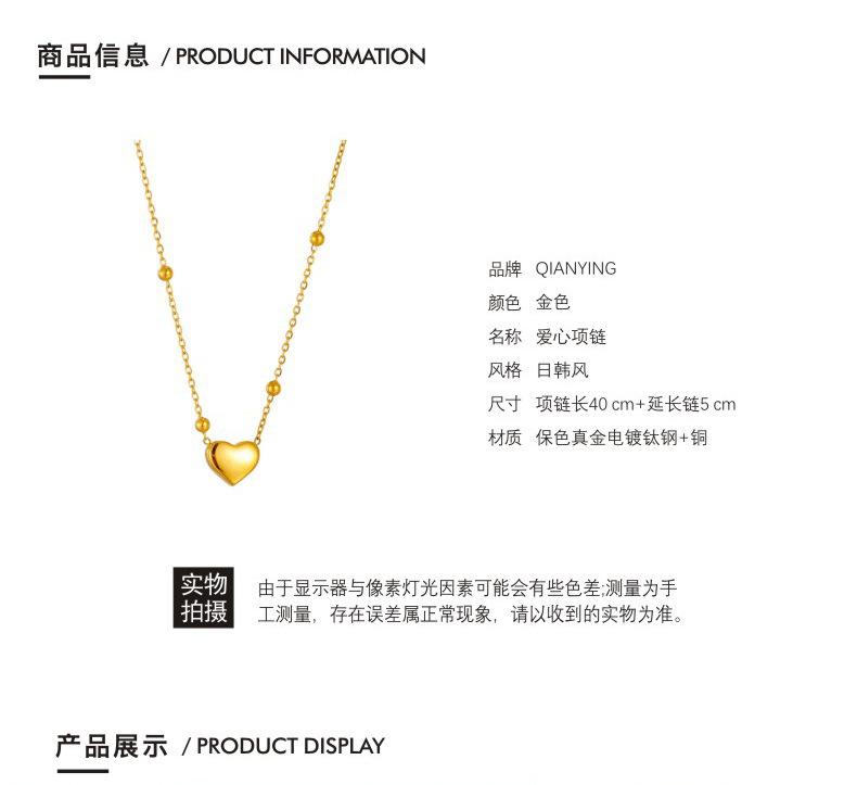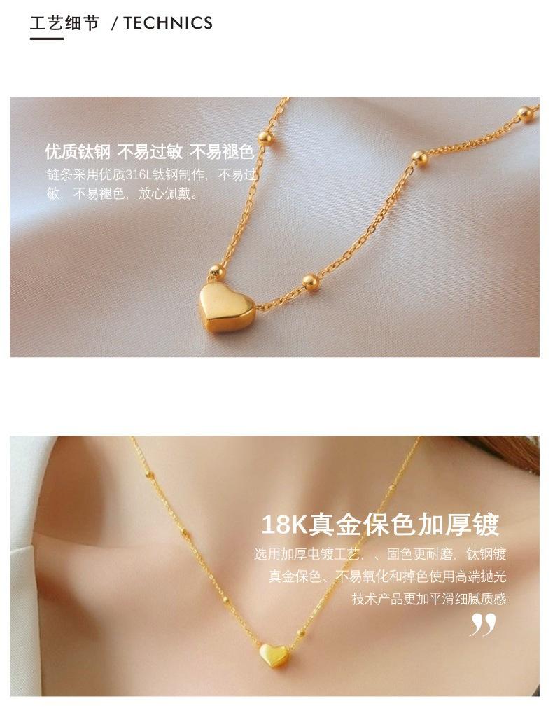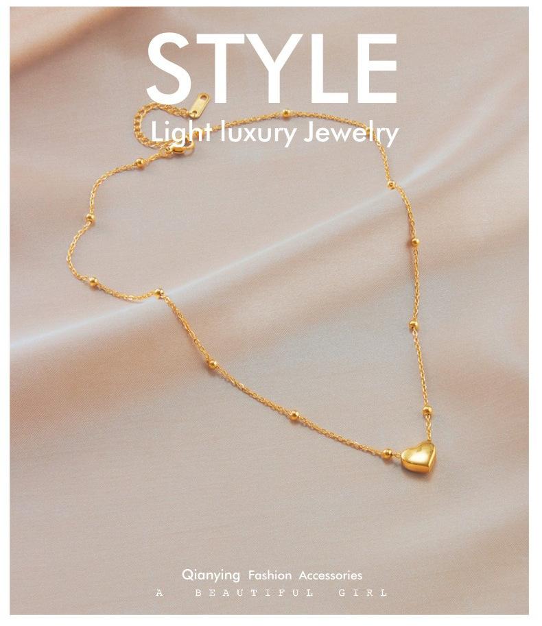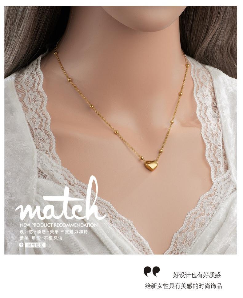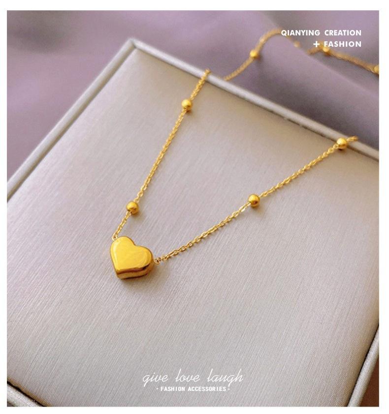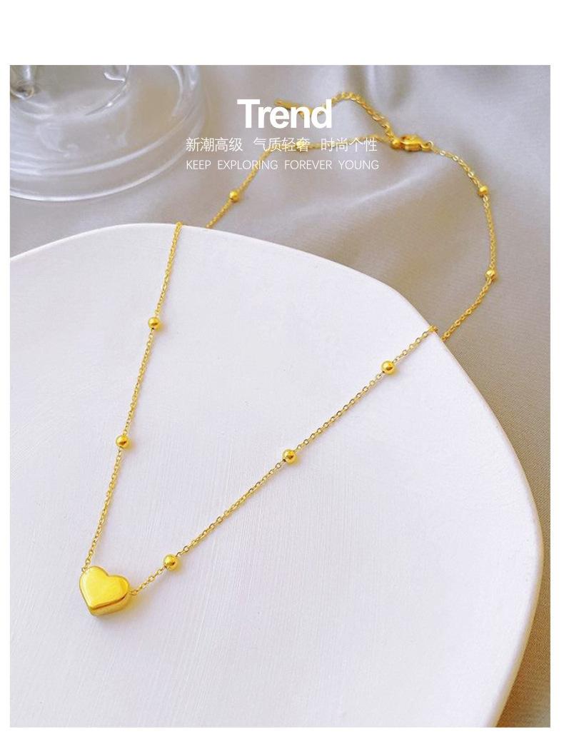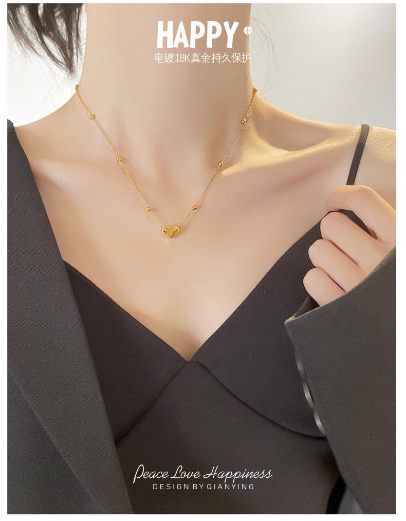 Collar de bola de acero de titanio con forma de corazón de melocotón, estilo coreano, sencillo, de moda, con colgante de amor, de verano, ligero y lujoso, para clavícula de mujer.