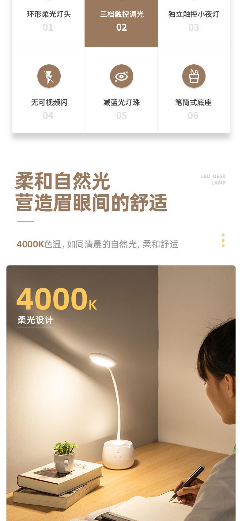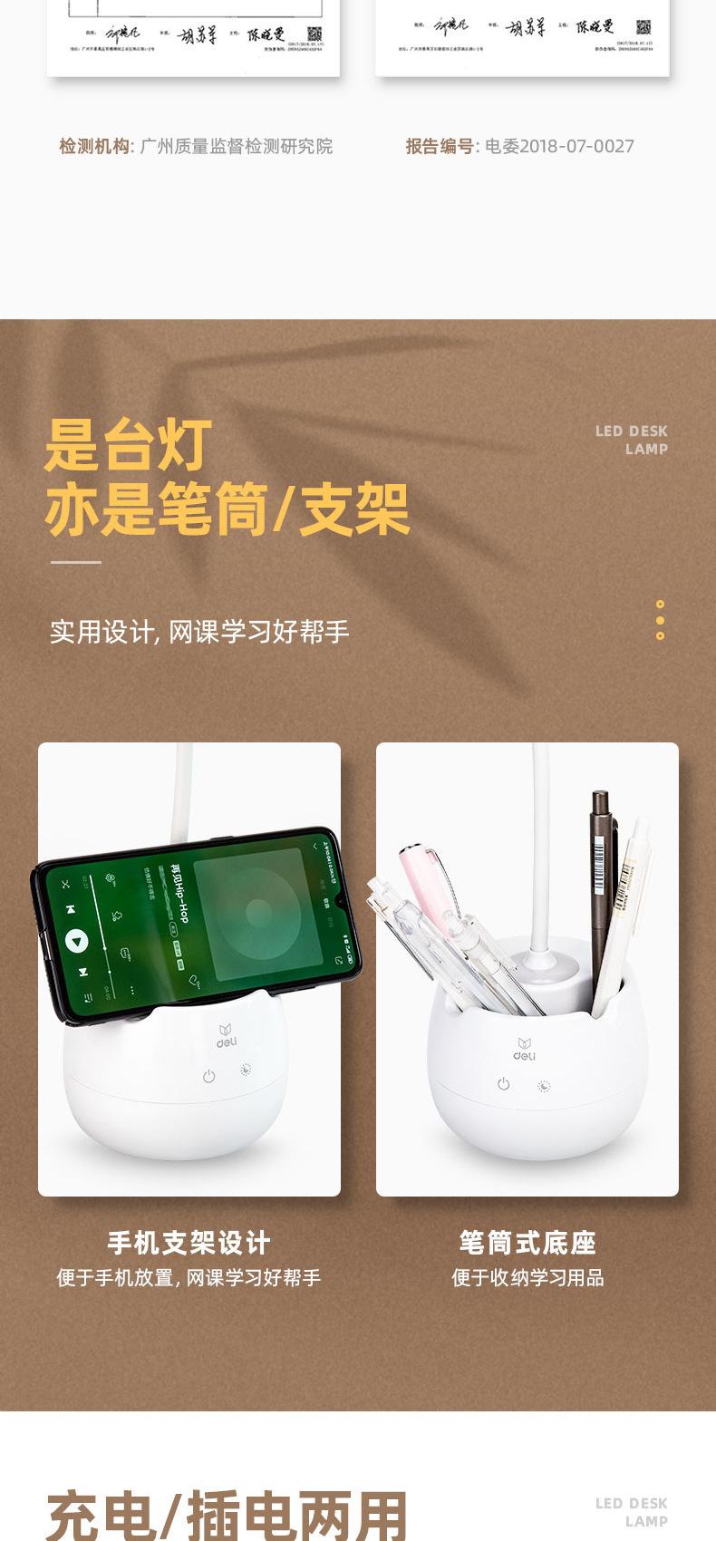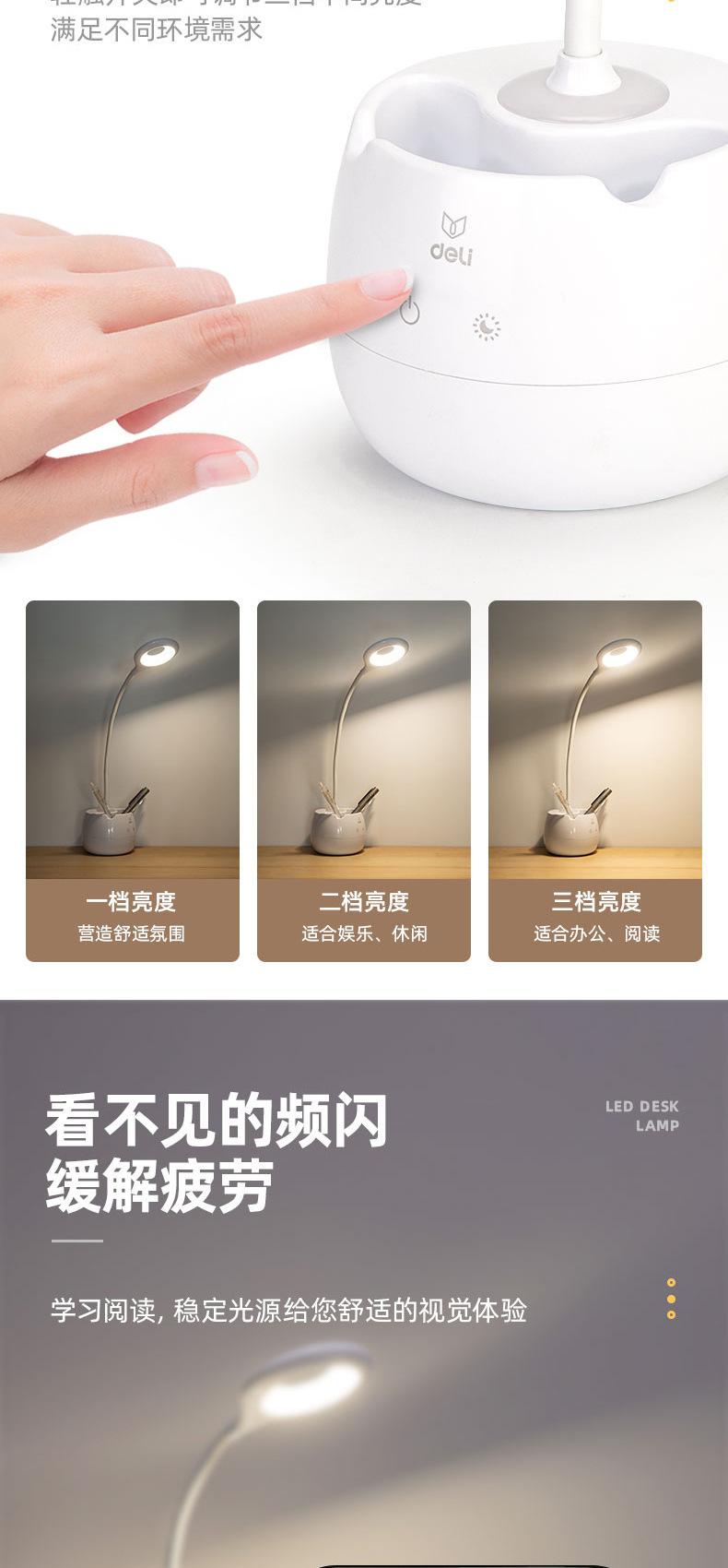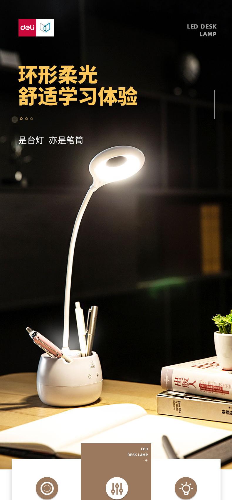 Compra Lámpara de escritorio Deli 4326 con protección ocular para estudiantes, ideal para dormitorio, lectura, mesita de noche, LED, recargable al por mayor en Joom.pro