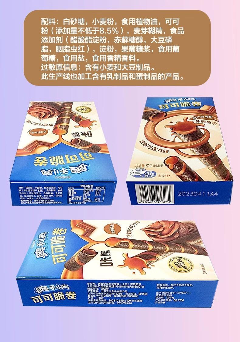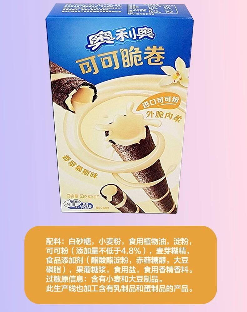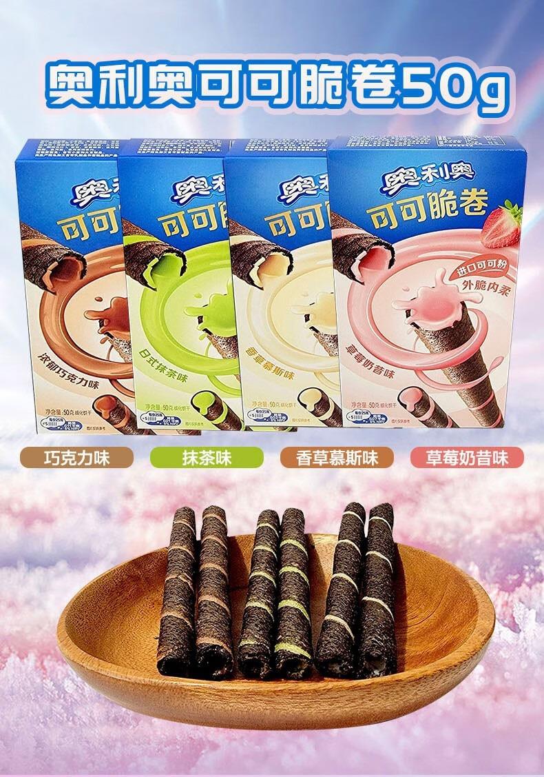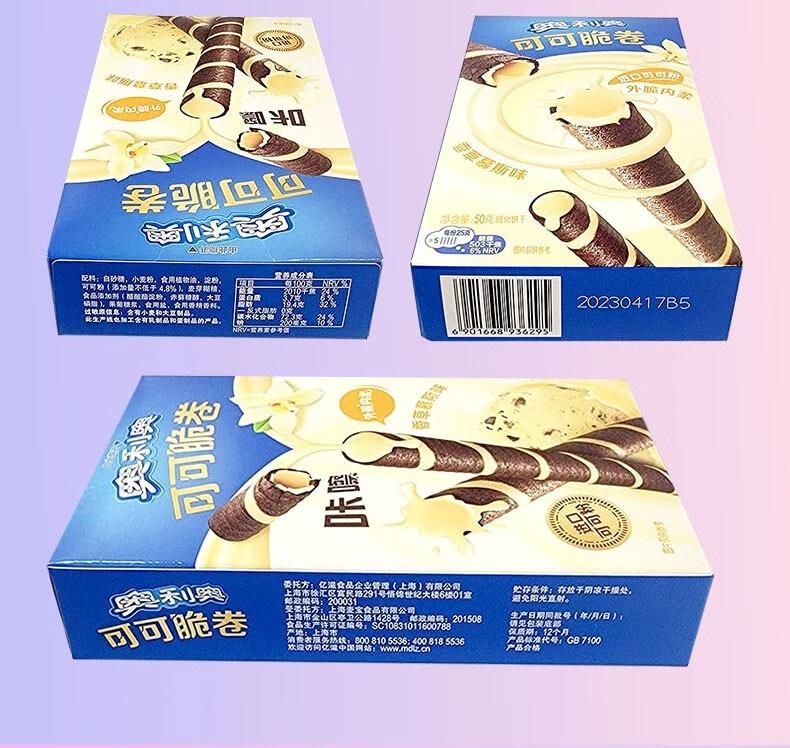 Oreo Cocoa Crispy Rolls 50g Galleta Vainilla Sabor Chocolate Snack Casual Oficina Galleta En Caja Crujiente
