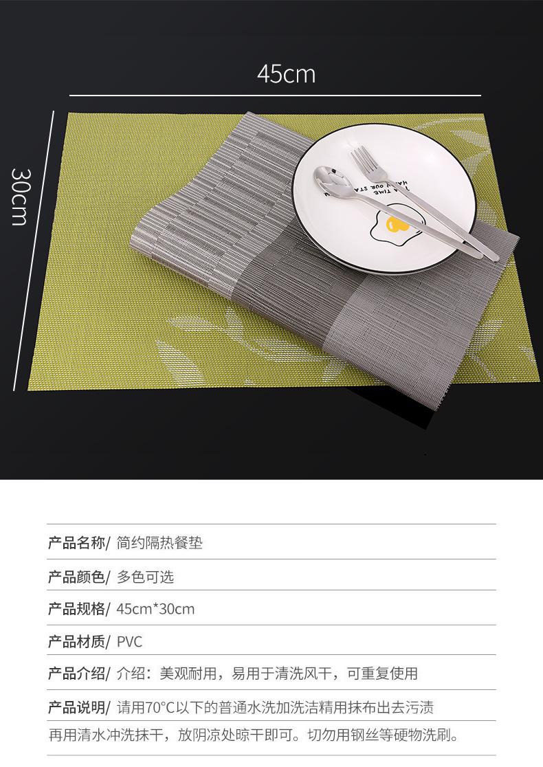 Mantel individual de PVC de estilo nórdico, mantel individual Teslin, mantel de mesa para el hogar, mantel individual occidental antideslizante para hotel, tapete aislante para comidas, venta al por mayor