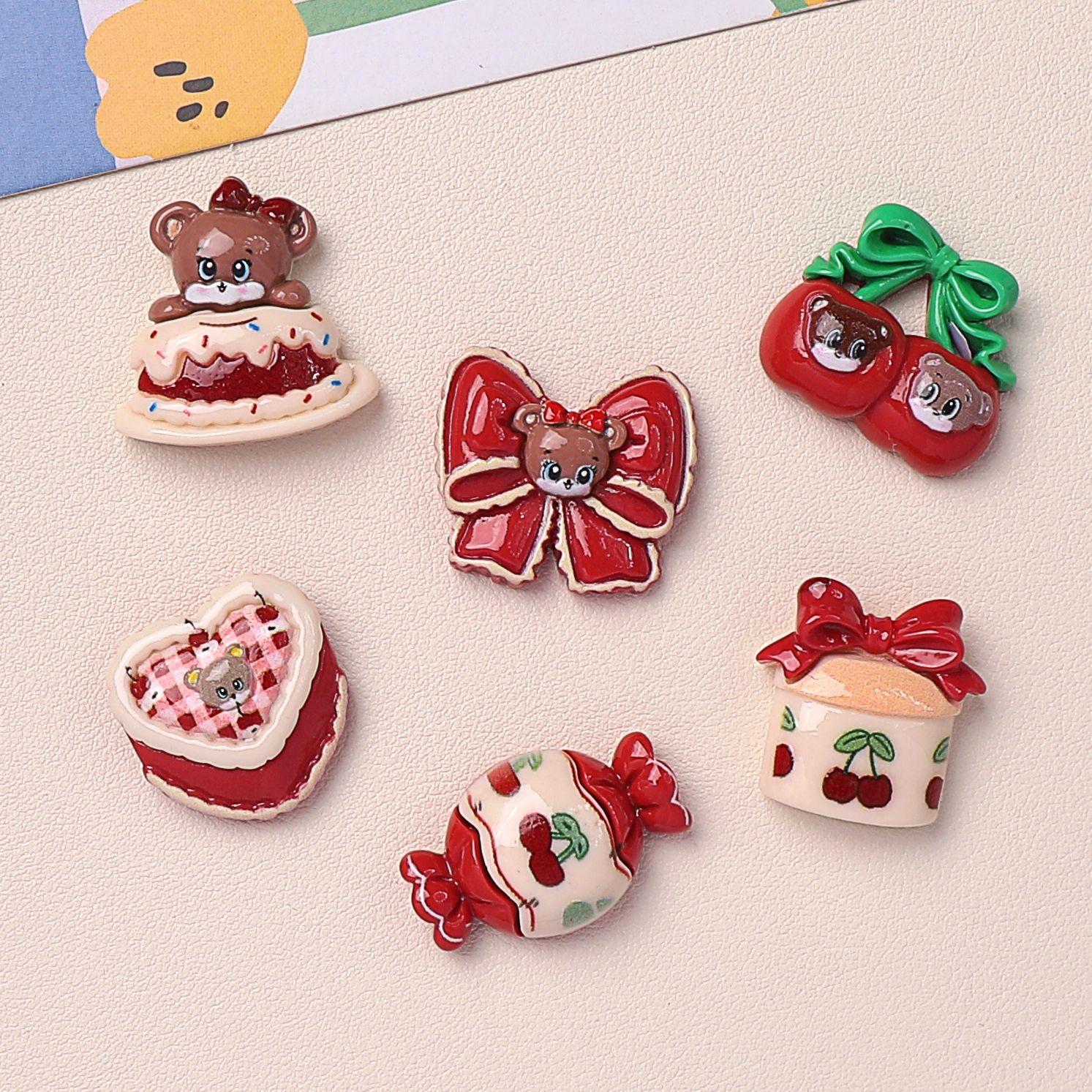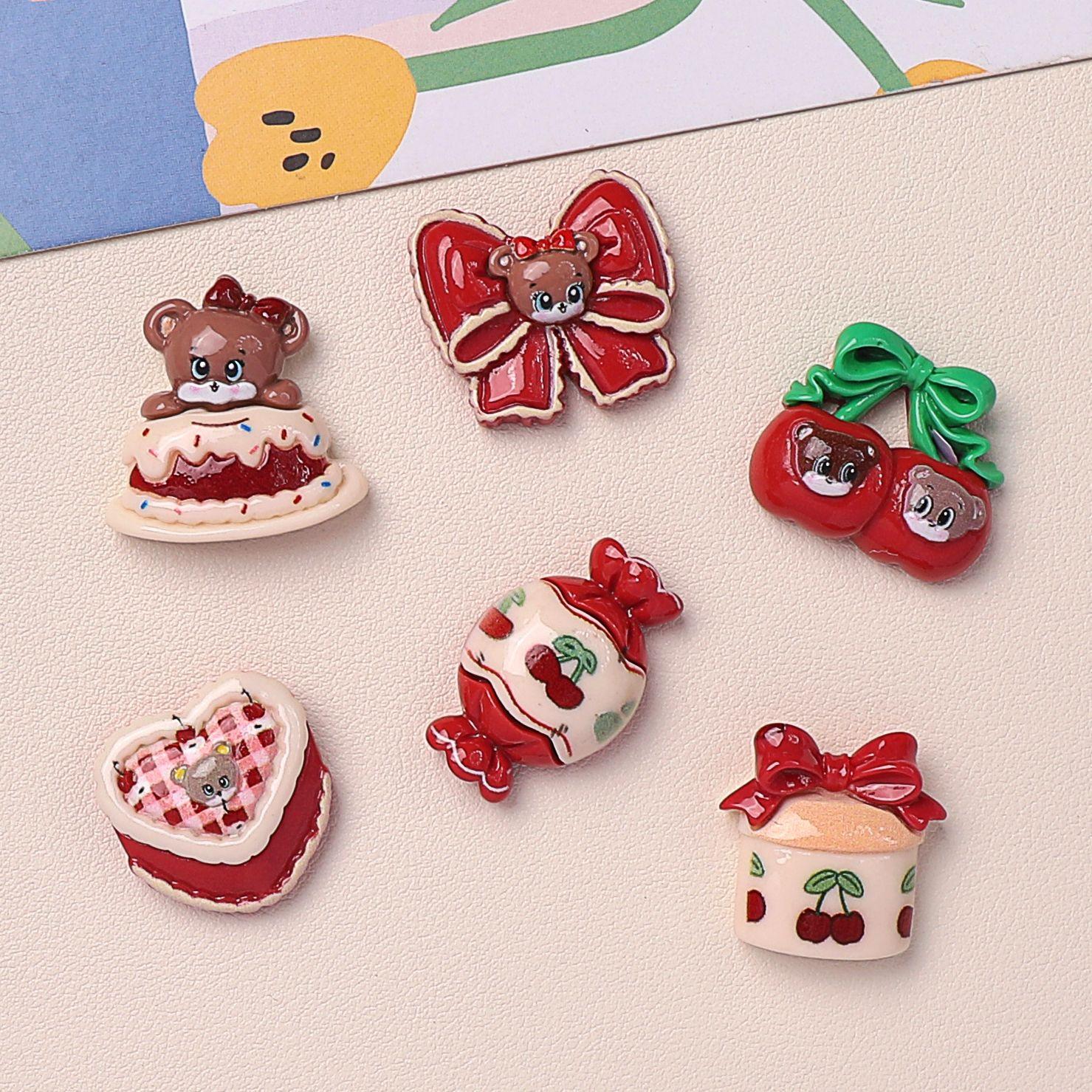 Accesorios de resina de bricolaje de color cereza con cara brillante de dibujos animados, horquilla hecha a mano, funda para teléfono móvil, taza de agua, sombreros, lote