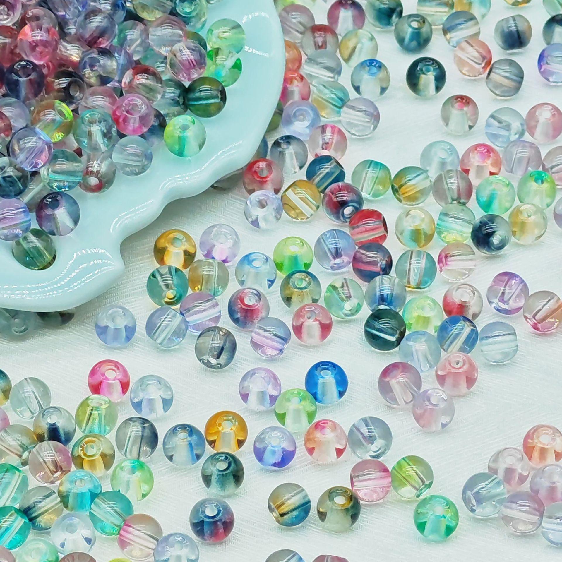 Cuentas de gelatina de 6 mm, cuentas redondas, cuentas transparentes, cuentas de vidrio, pulseras, collares, materiales hechos a mano.