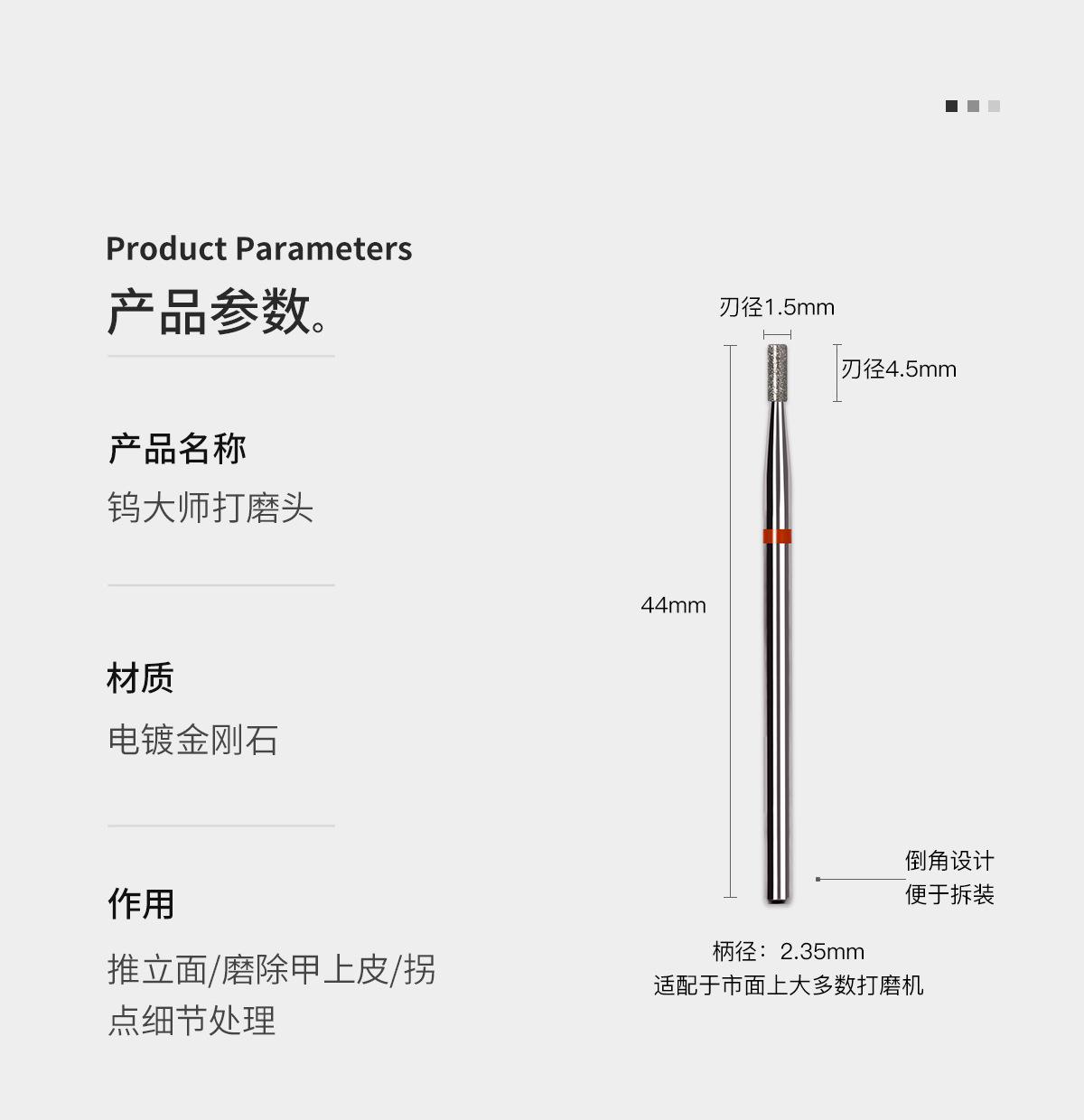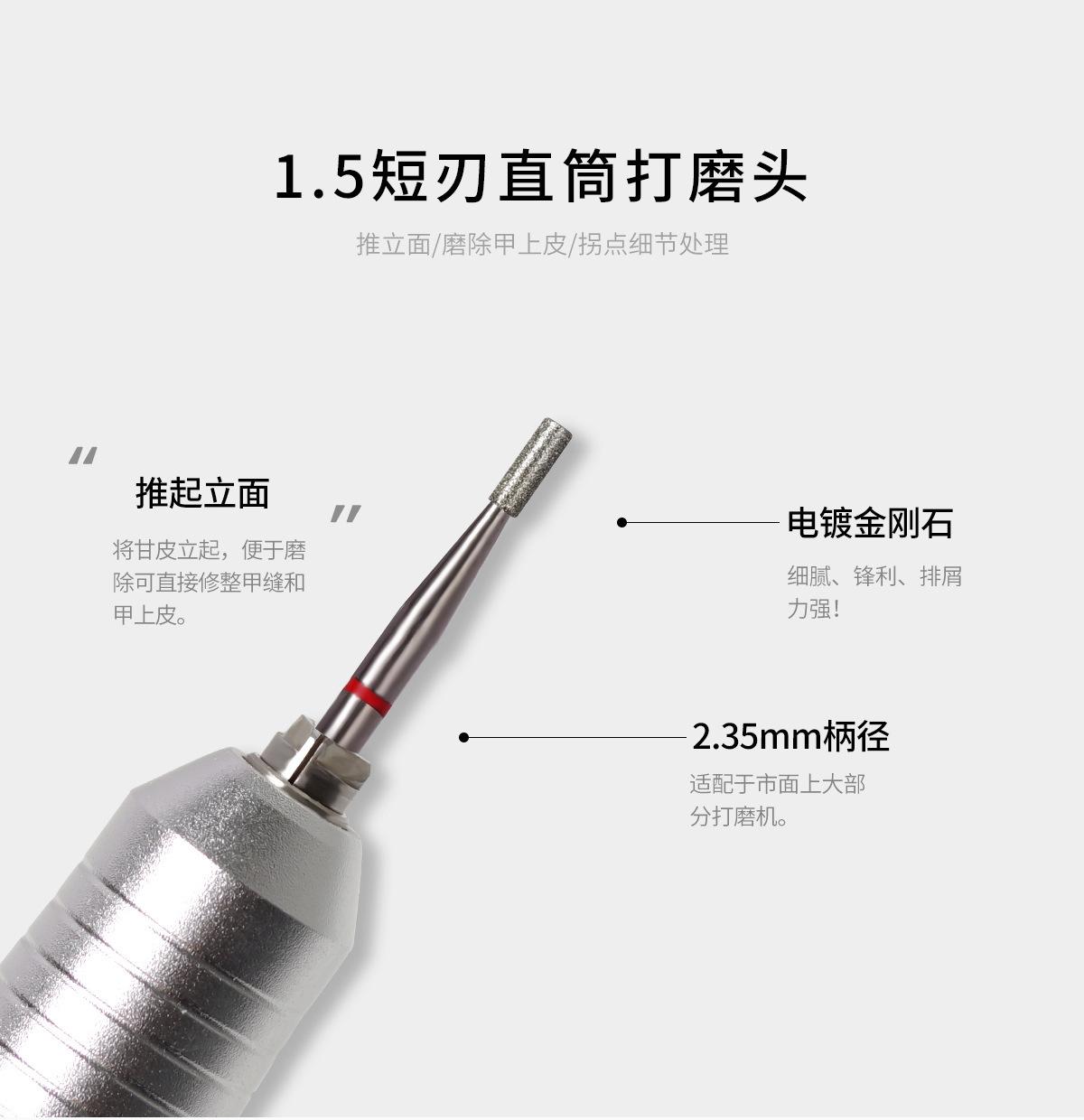 Cabezal de Pulido para Manicura Frontal Herramienta de Manicura Estilo Ruso Pre-Procesamiento Hoja Corta Recta 1.5mm Diamante Electrochapado