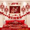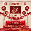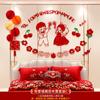 Diseño de sala de bodas adecuado para la decoración del dormitorio de la nueva casa, dormitorio principal del hombre, mesita de noche con flores, conjunto completo de suministros para bodas