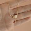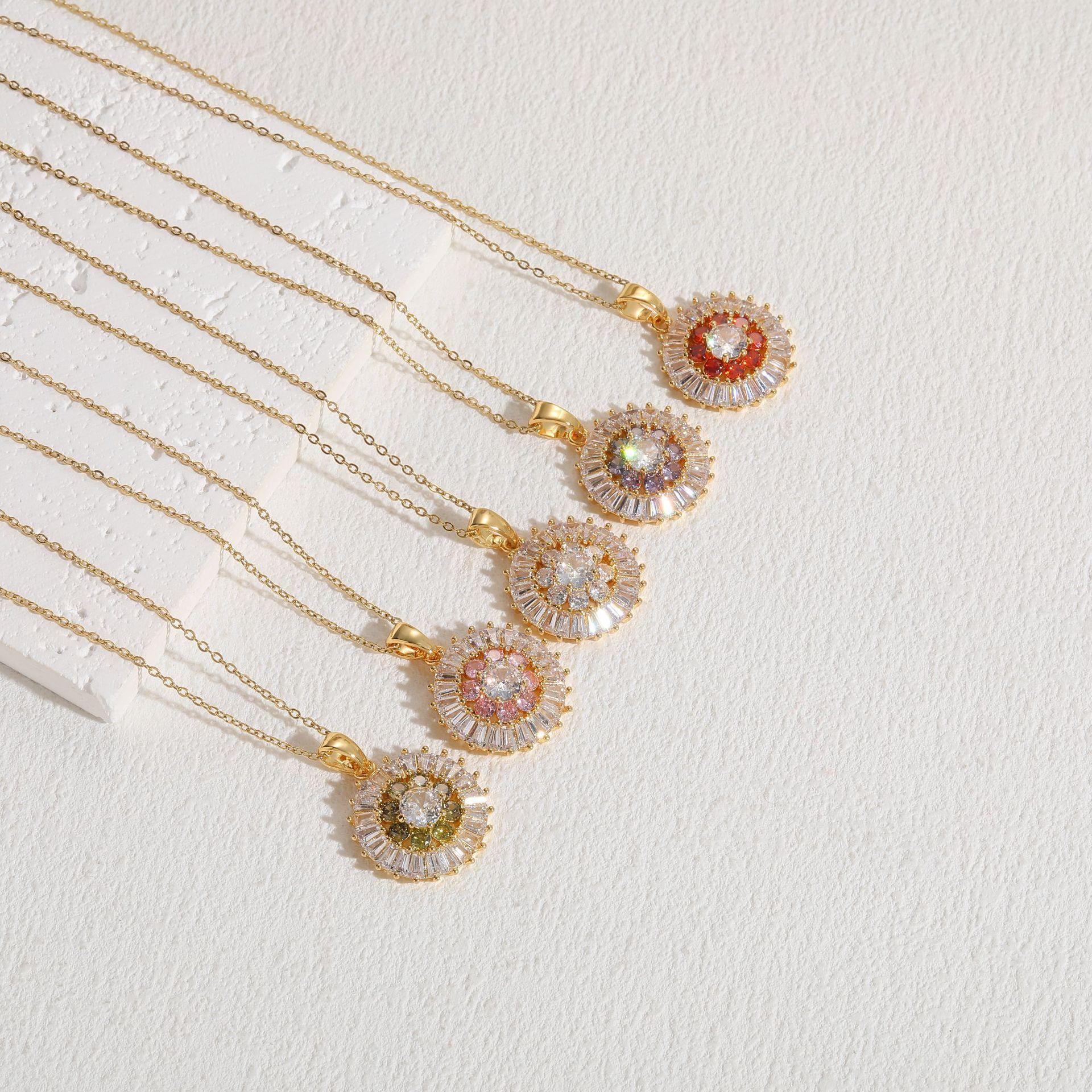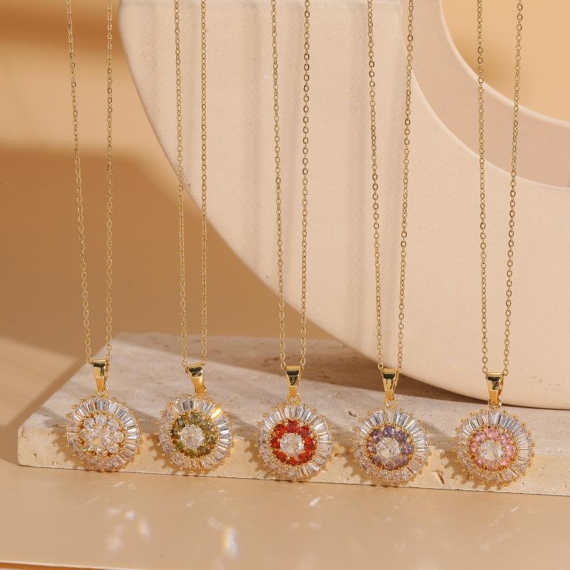 Elegante collar con colgante de flor de circón, estilo lujoso y ligero, chapado en cobre, de oro real de 14 quilates con diamantes.