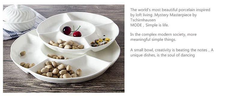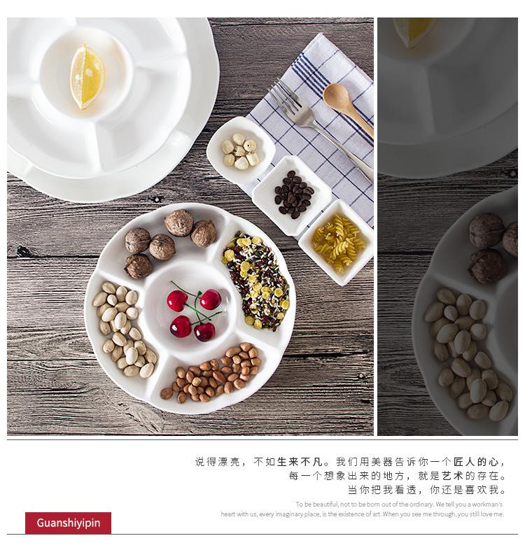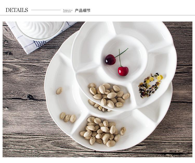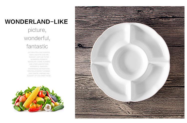 Plato de cerámica creativo, plato grande de fruta de hotel, plato de carne marinada, plato de postre, plato de frutos secos, plato de cerámica de cinco compartimentos