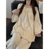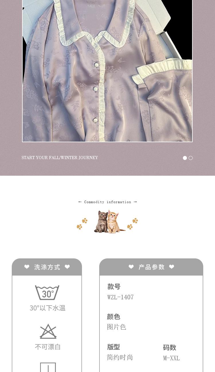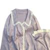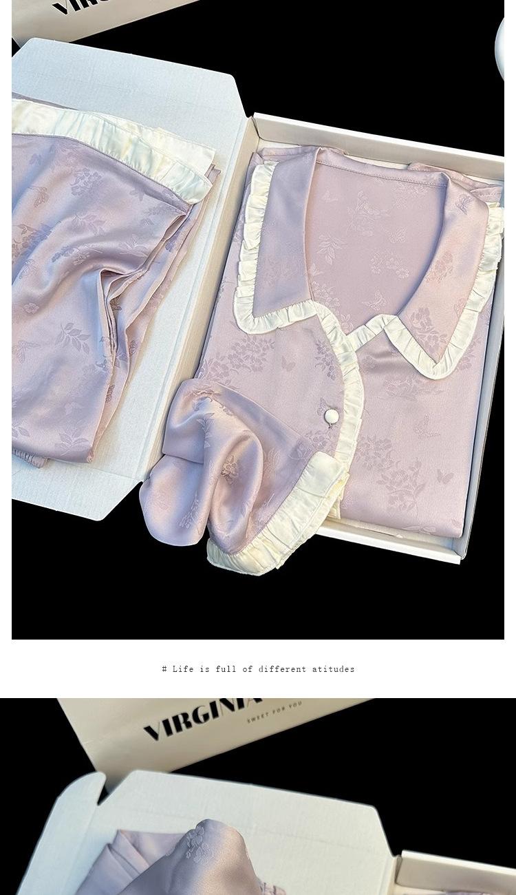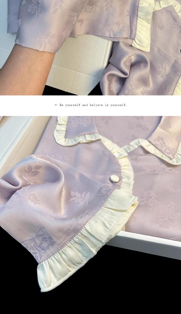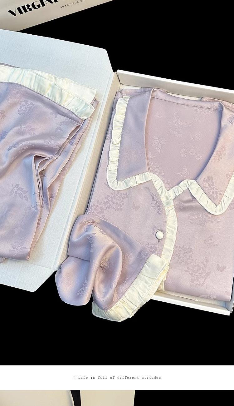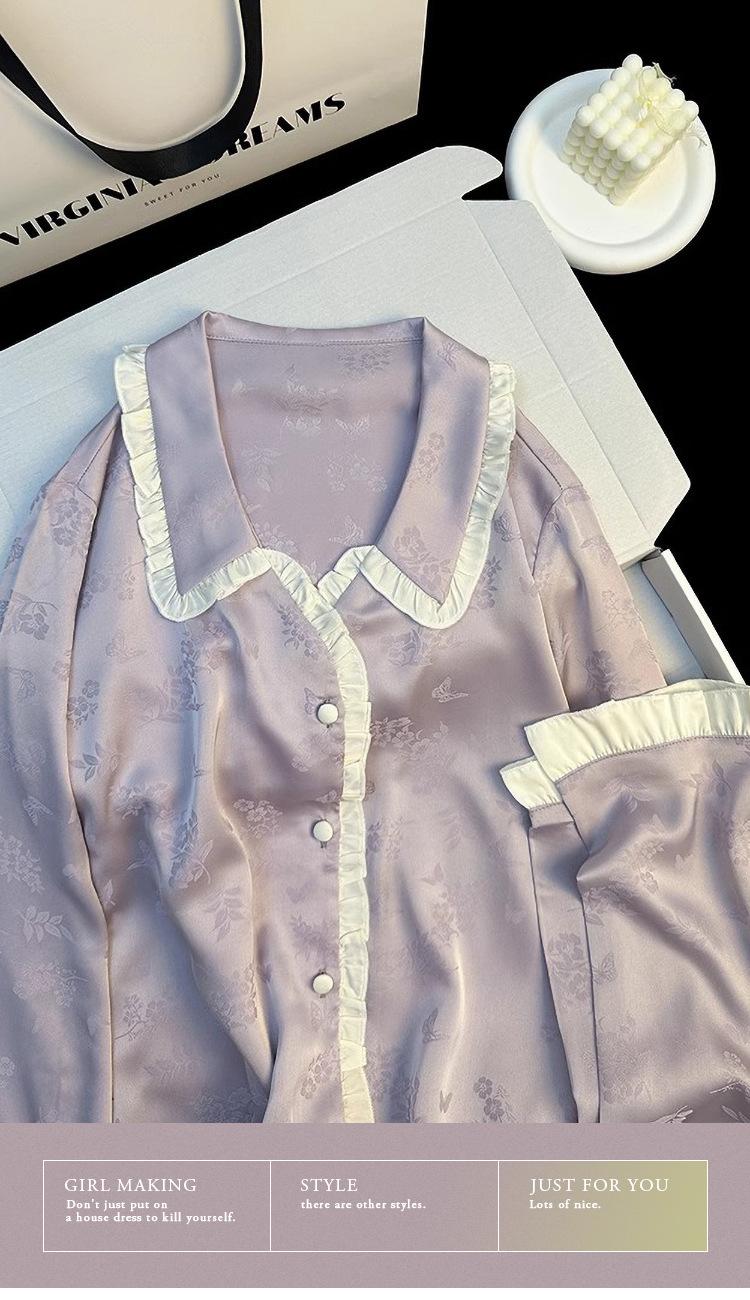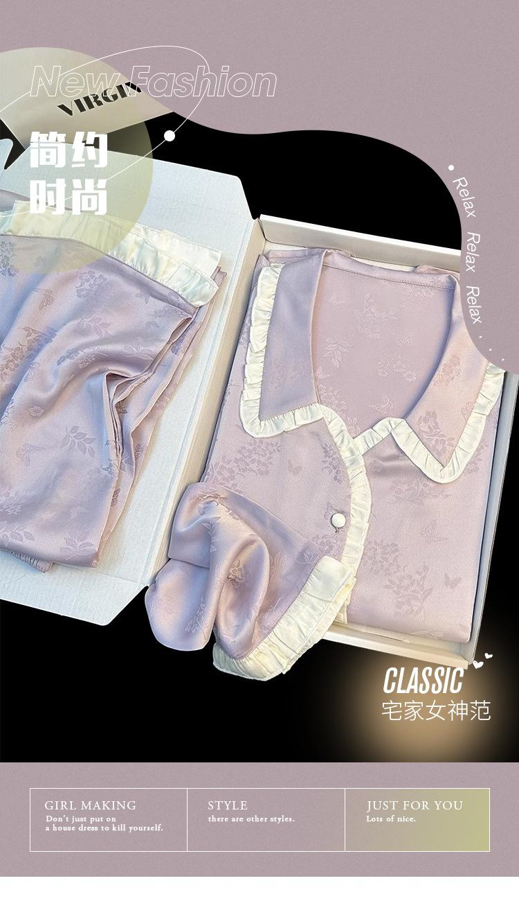 Pijama de manga larga de seda de hielo floral viento dulce francés transfronterizo para mujer, traje de ropa para el hogar con volantes de primavera y otoño al por mayor