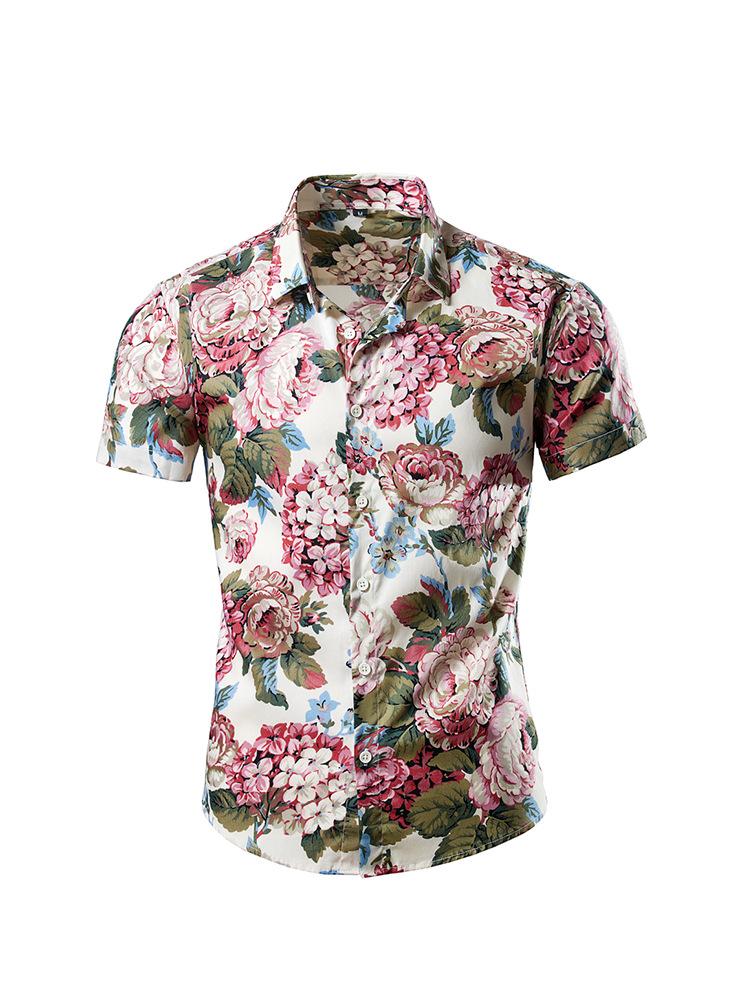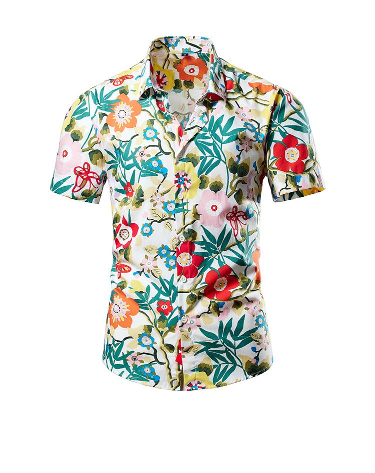 2025 Exportación Nueva Moda para Hombre Casual Multicolor Floral Camisa Vacaciones Hawaianas Camisa Estampada Camisa de Manga Corta