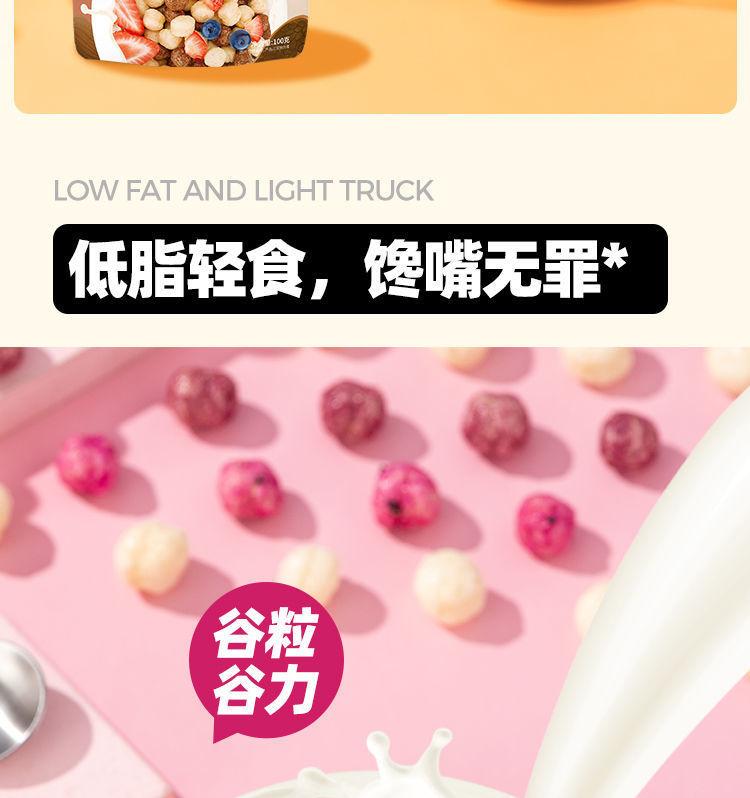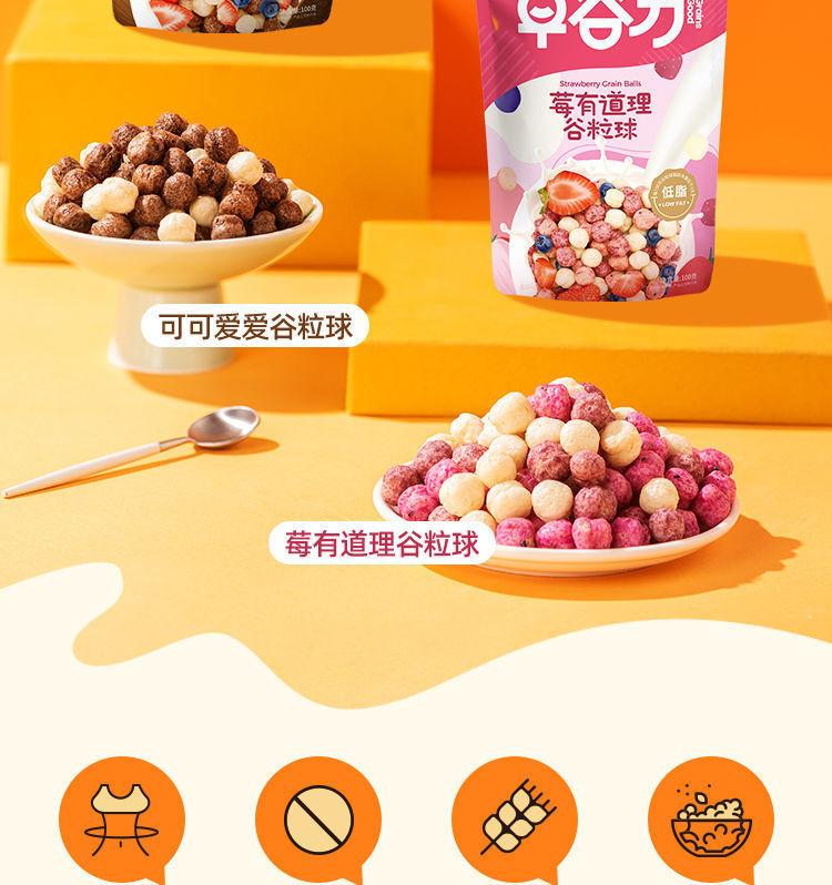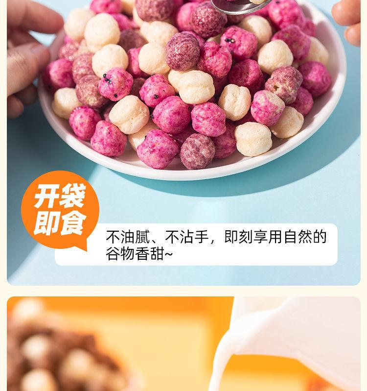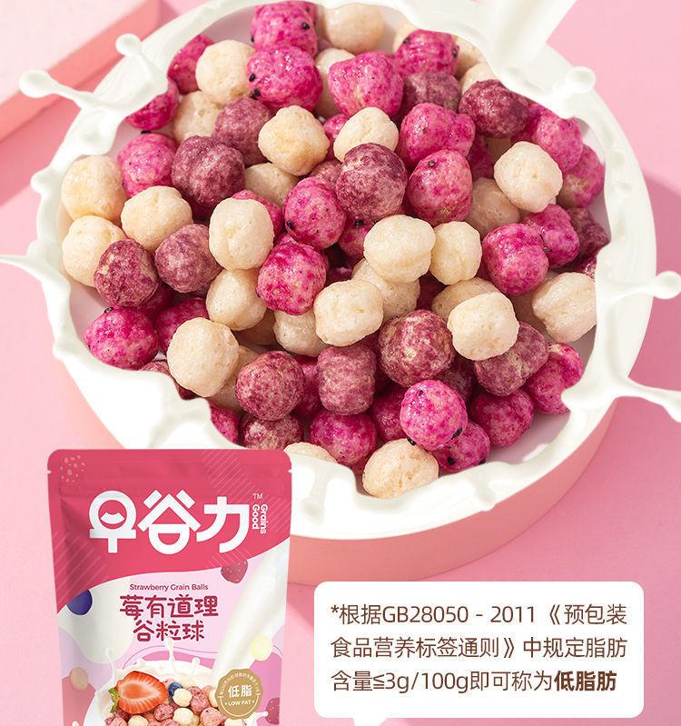 Cereal de Desayuno Bolas de Sandía y Bayas Crujientes de Avena con Leche de Avena Snacks Nutritivos Saludables No Fritos