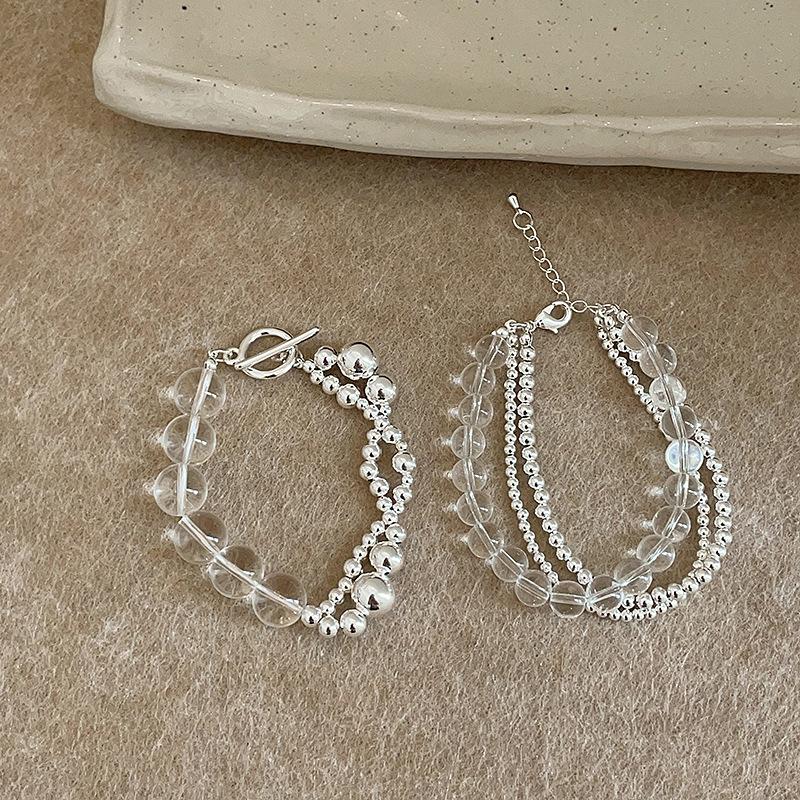 Pulsera Transparente con Costuras de Cuentas Bola de Metal Multicapa para Mujer Diseño Único Sentido de la Personalidad Moda Combinable Pulsera Pulsera