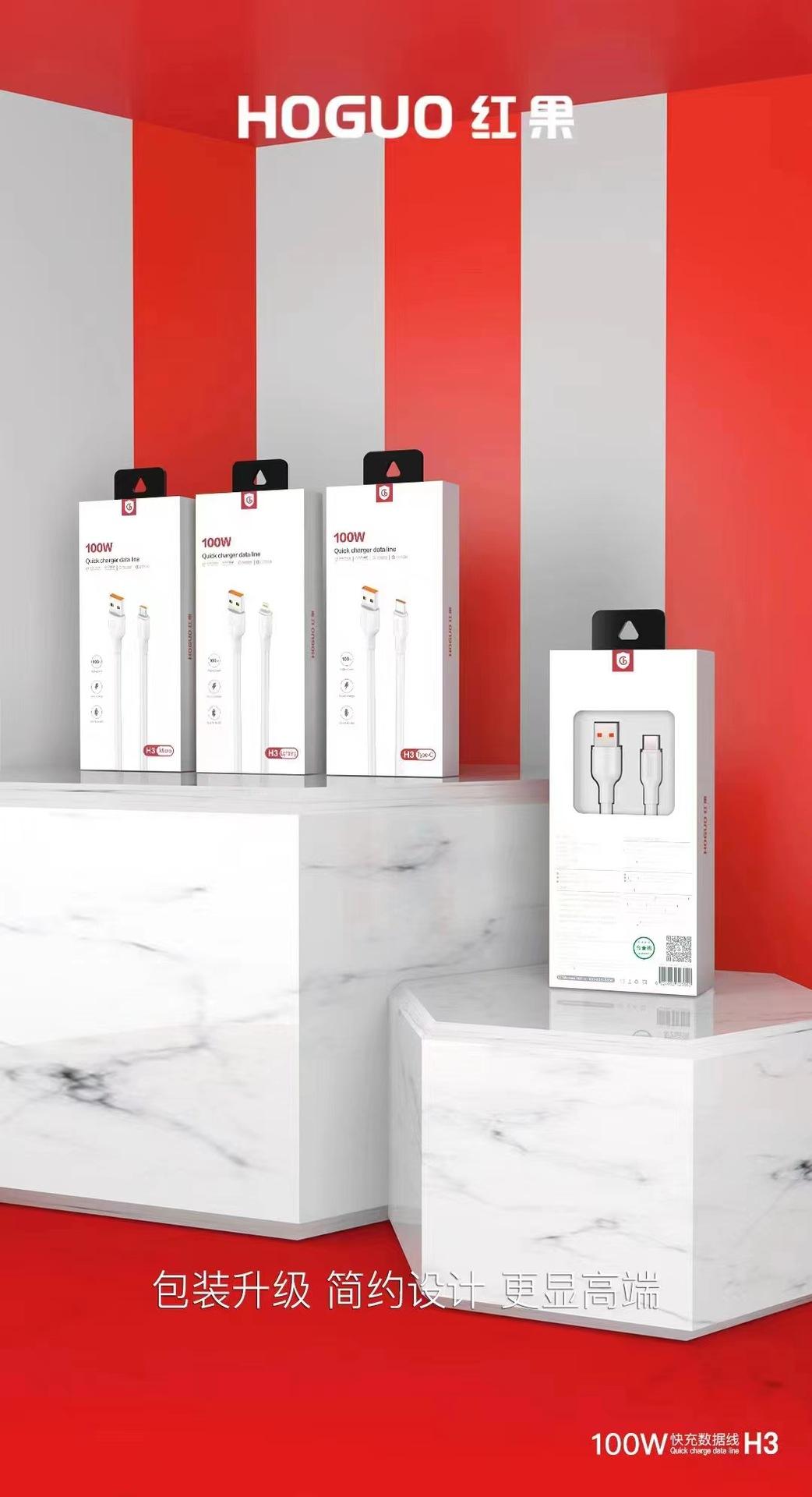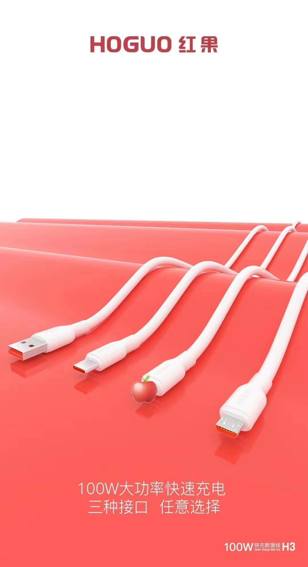 Hongguo H3:100W Fast Charge Android Line, Red fruit H3:100W fast charging Typec line, Red fruit H3:100W fast charging apple line