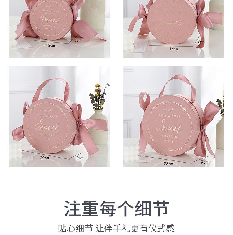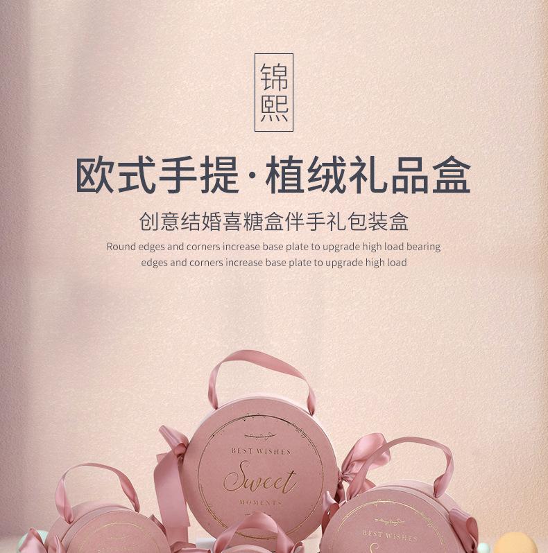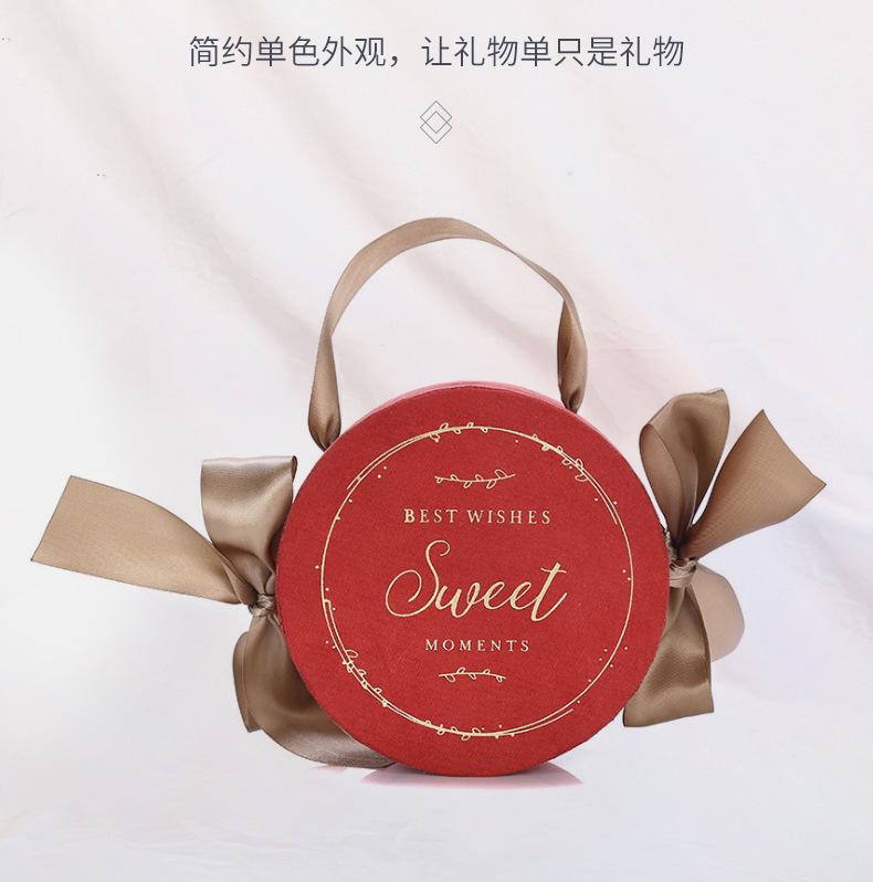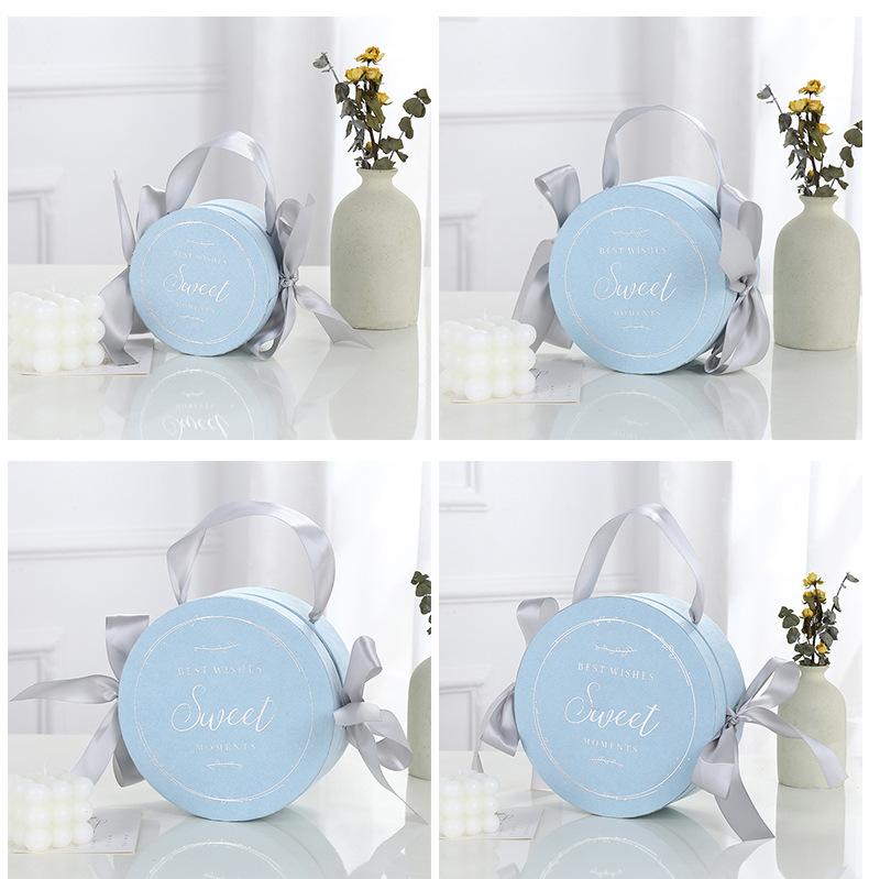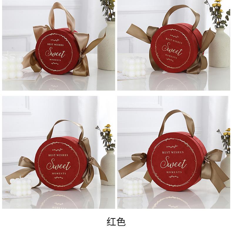 Caja de dulces de boda creativa y portátil de estilo europeo, caja de regalo de acompañamiento, caja de dulces de Navidad, caja de regalo redonda flocada