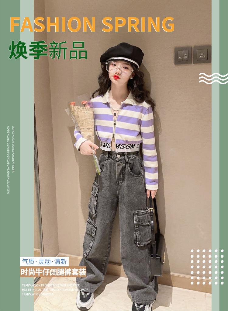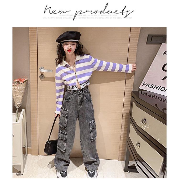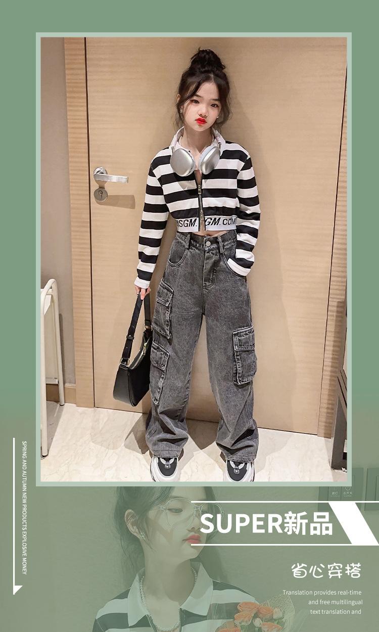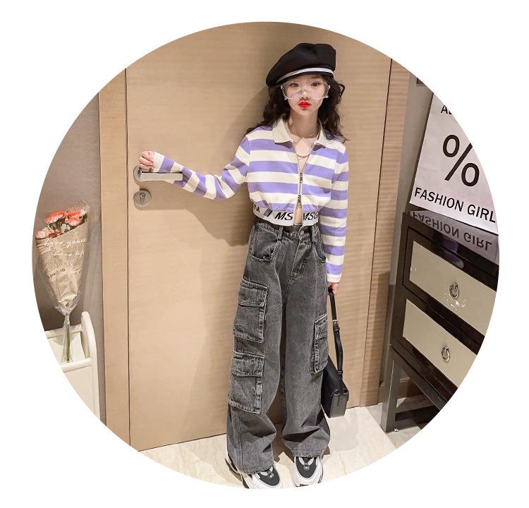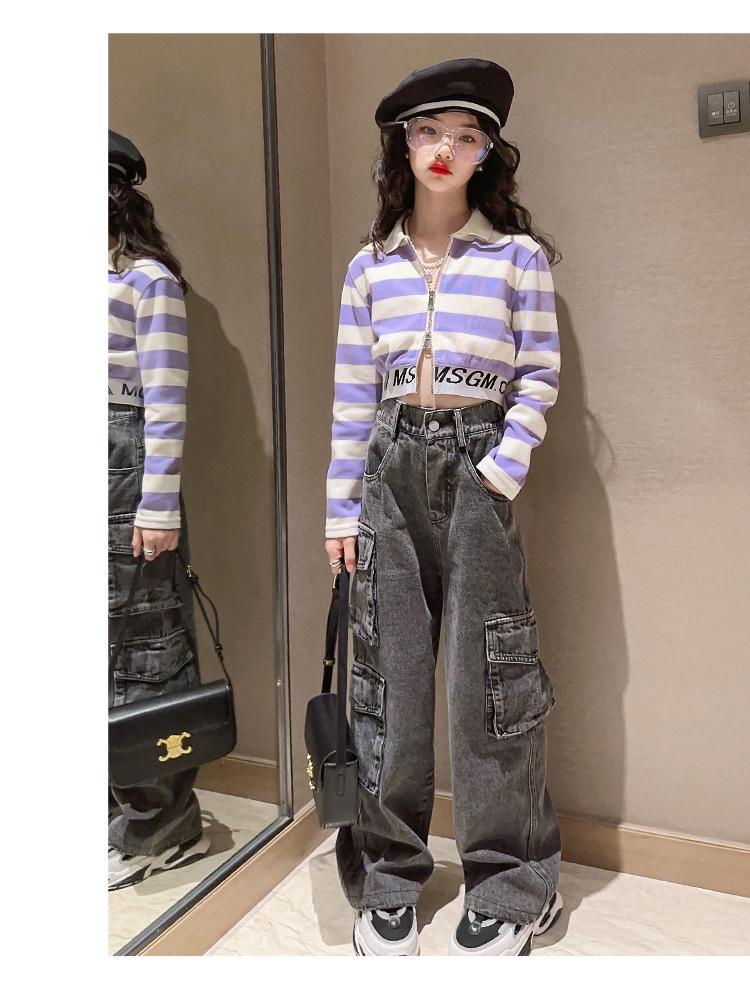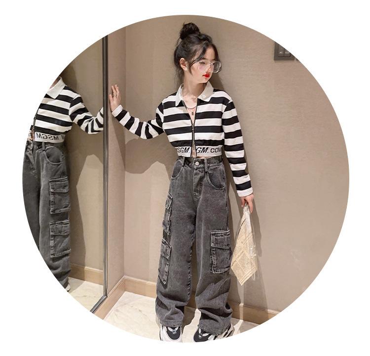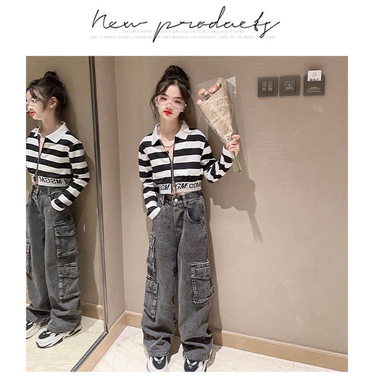 Ropa de Niña Traje de Moda Estilo Occidental 2025 Nuevo Ropa de Primavera para Niños Medianos y Grandes Cárdigan de Primavera y Otoño para Niños Jeans Conjunto de Dos Piezas