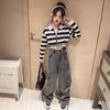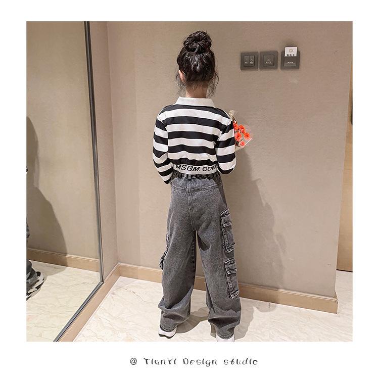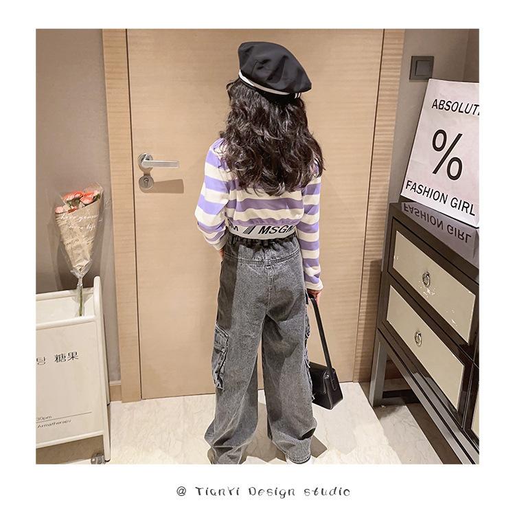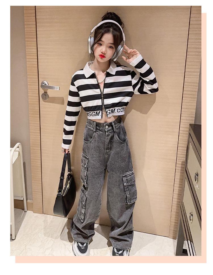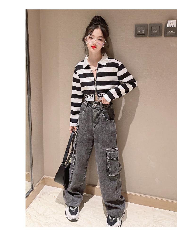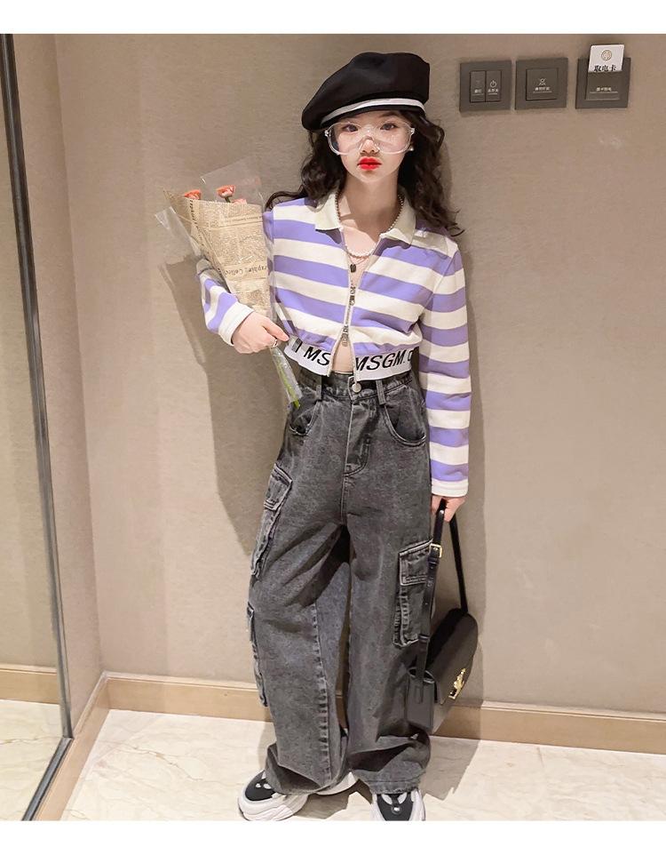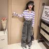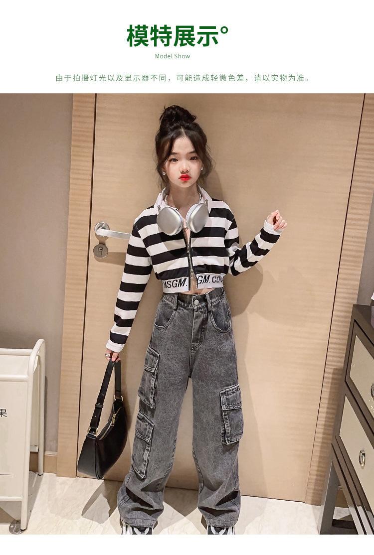 Ropa de Niña Traje de Moda Estilo Occidental 2025 Nuevo Ropa de Primavera para Niños Medianos y Grandes Cárdigan de Primavera y Otoño para Niños Jeans Conjunto de Dos Piezas