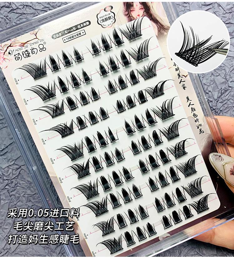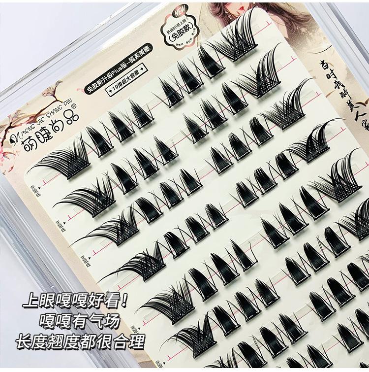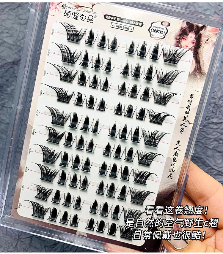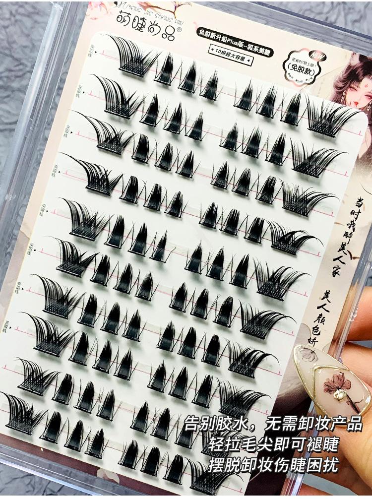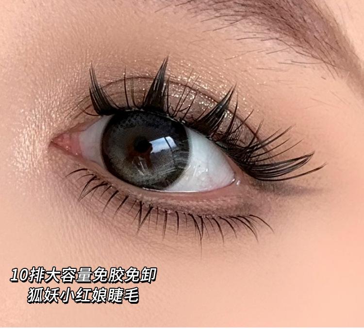 10 filas de pestañas postizas de zorro con encanto dulce, autoadhesivas, sin pegamento, para personas perezosas, en un solo grupo, pestañas gruesas y rizadas para principiantes, fotogénicas.