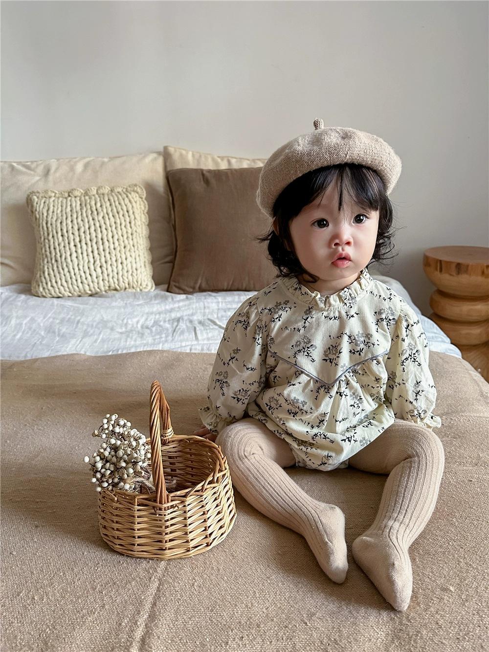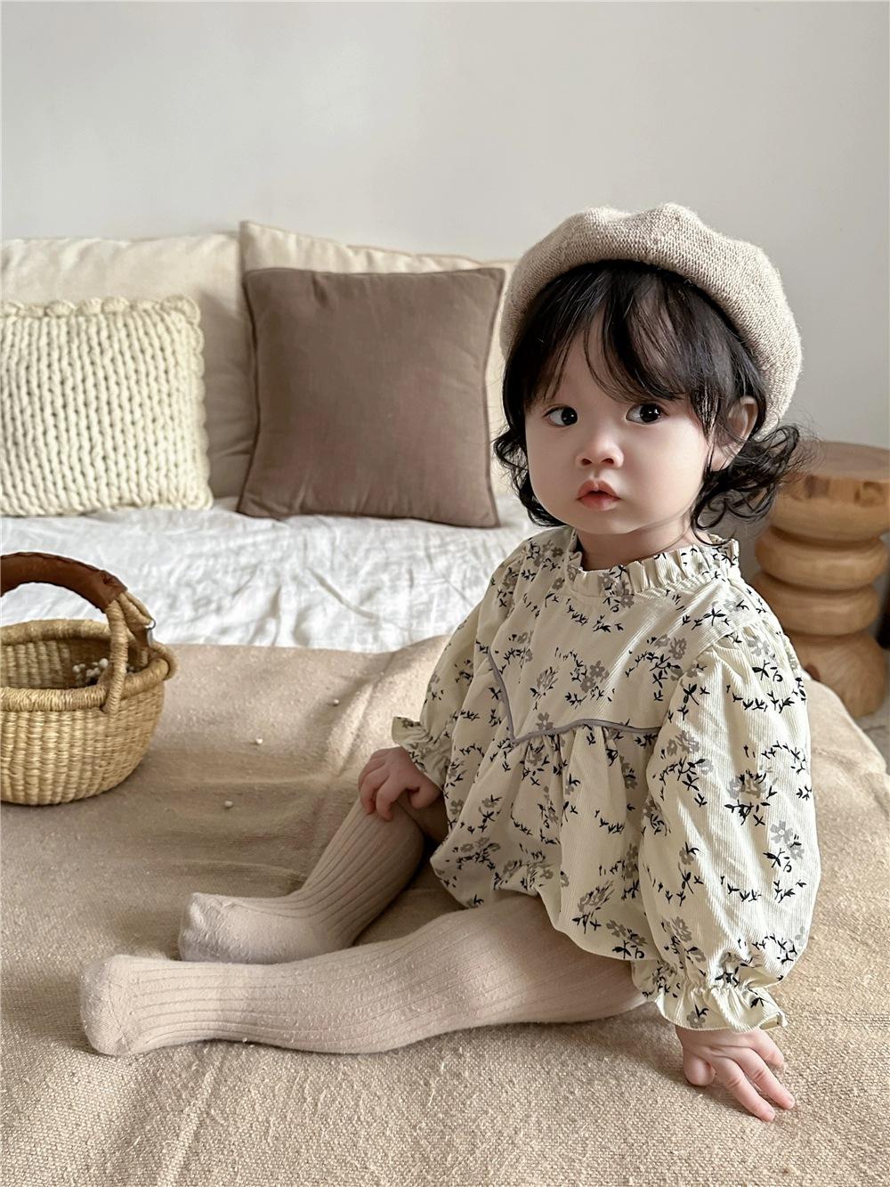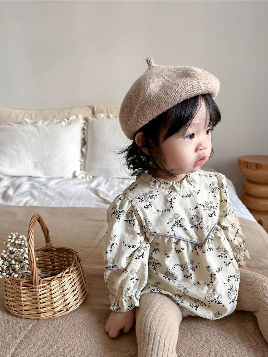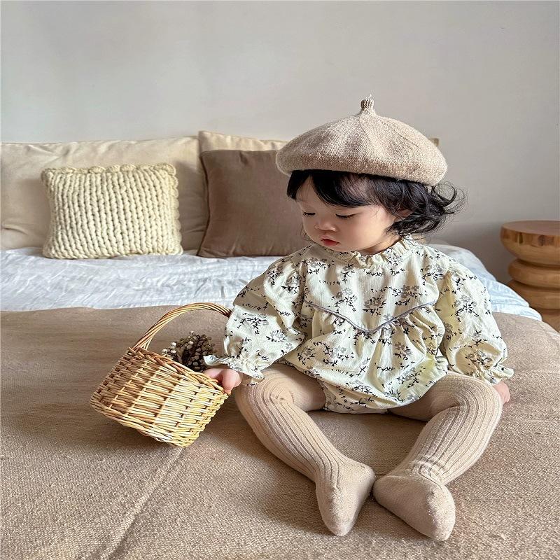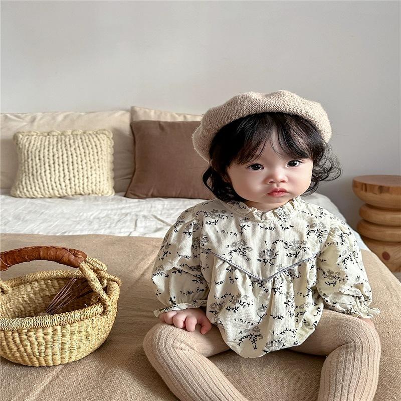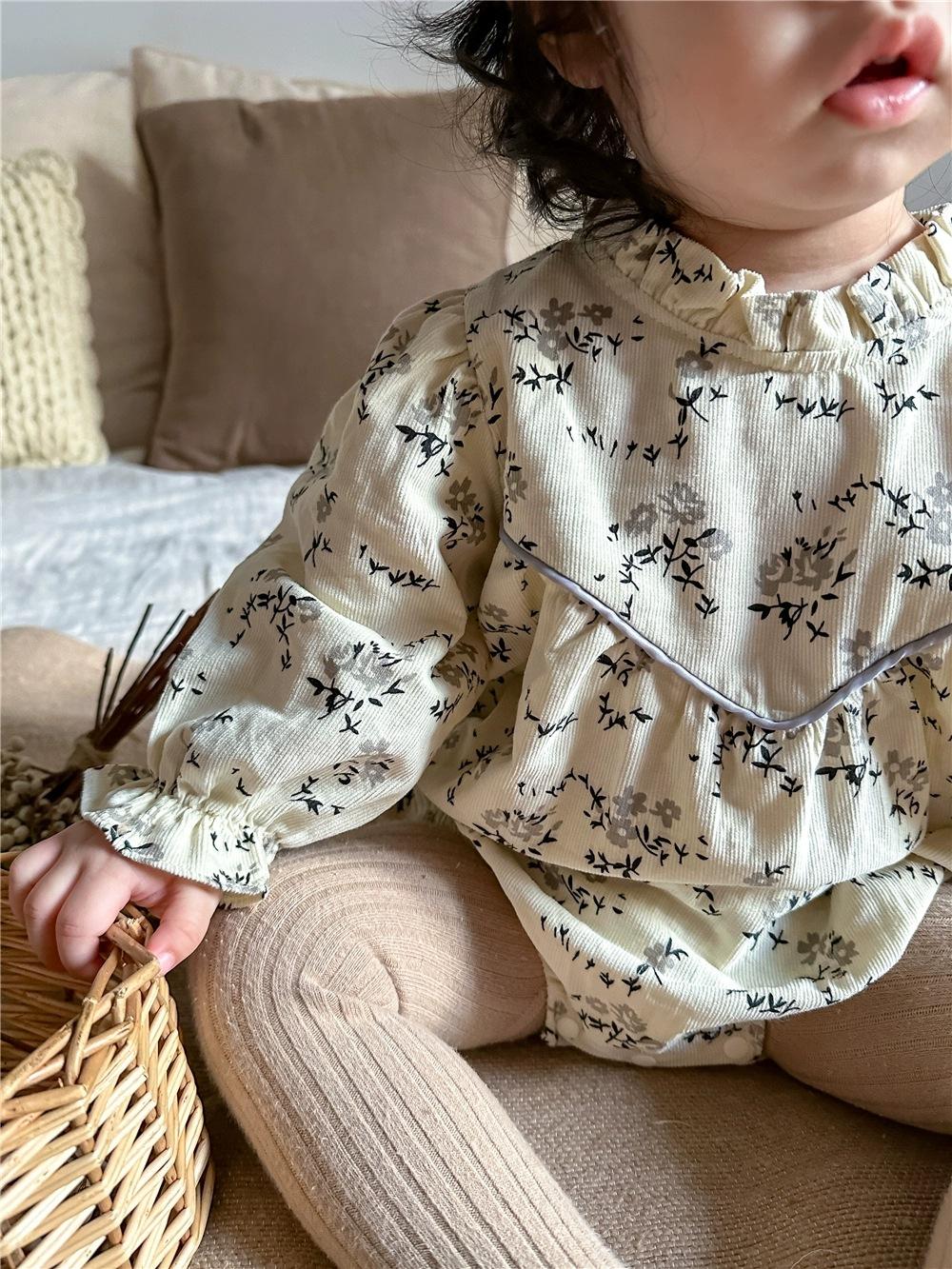 Mono de manga larga con estampado floral para bebé, mono triangular con tirantes finos, mono de otoño para niña, mono de bebé para combinar con todo.
