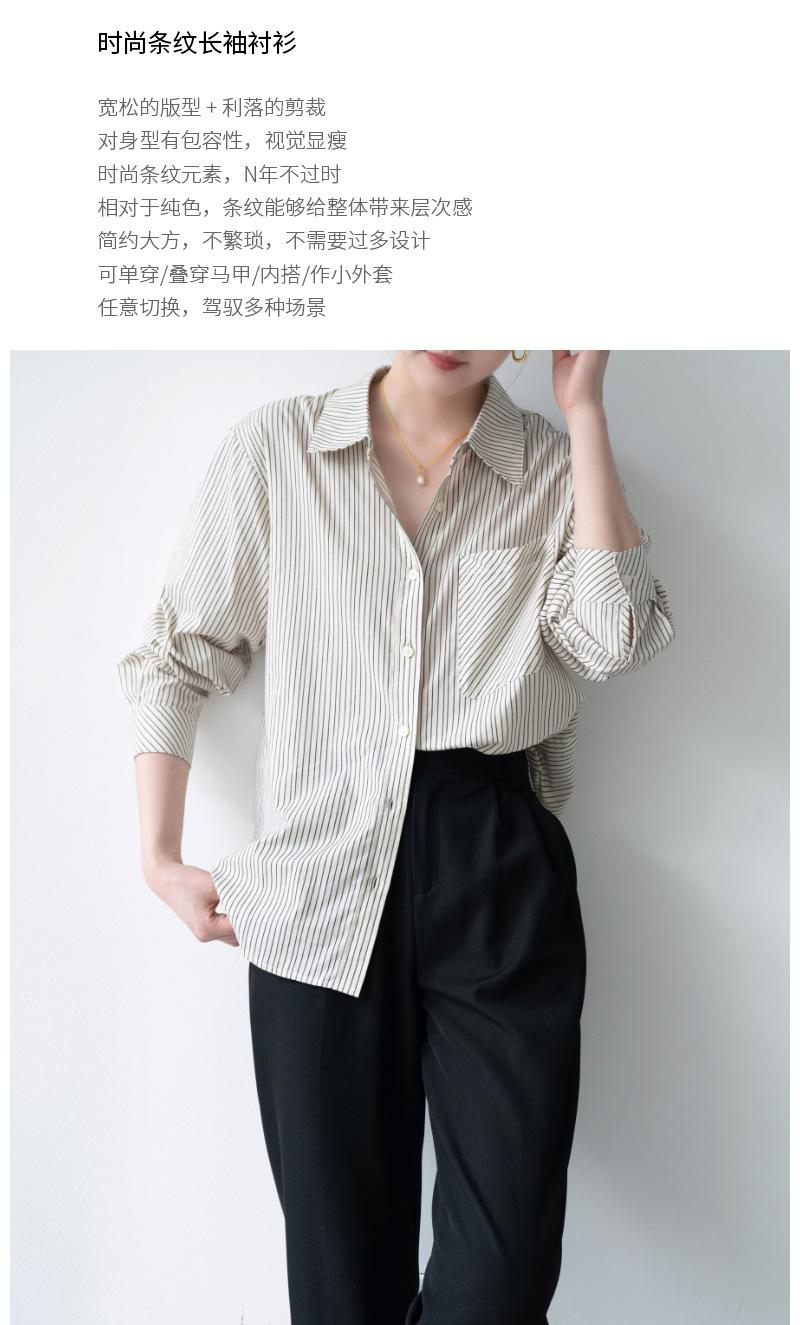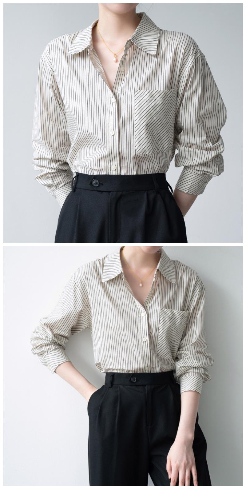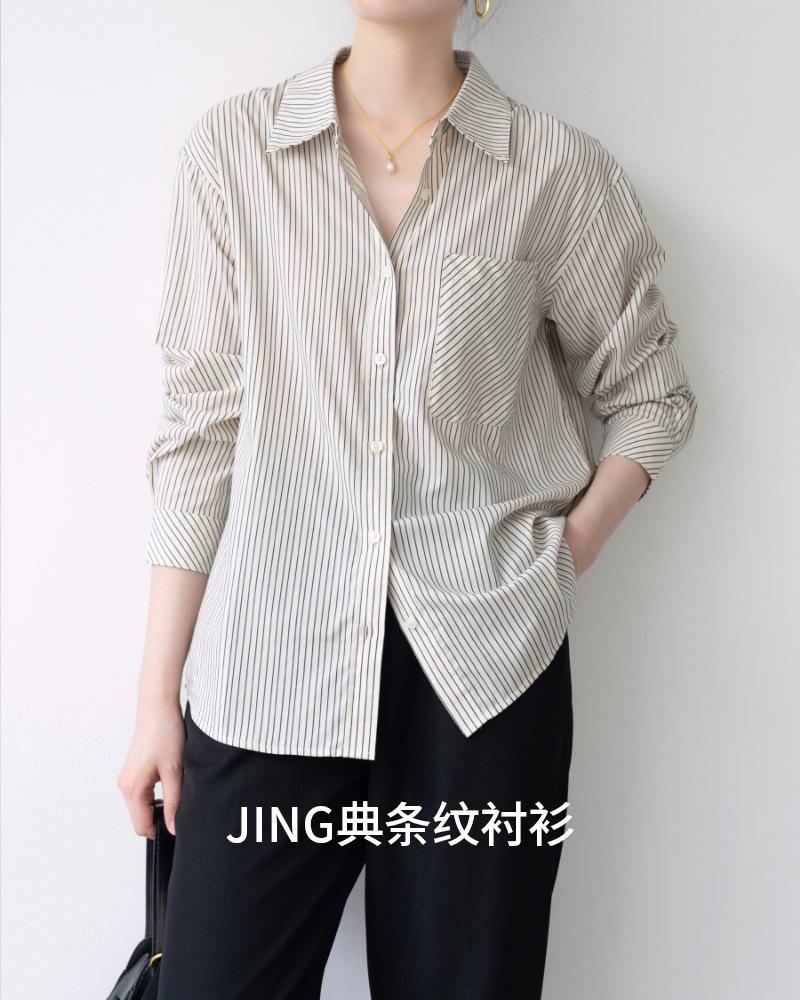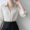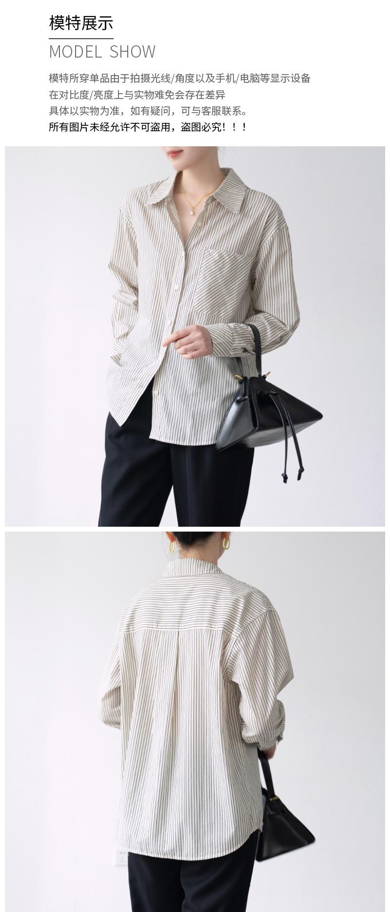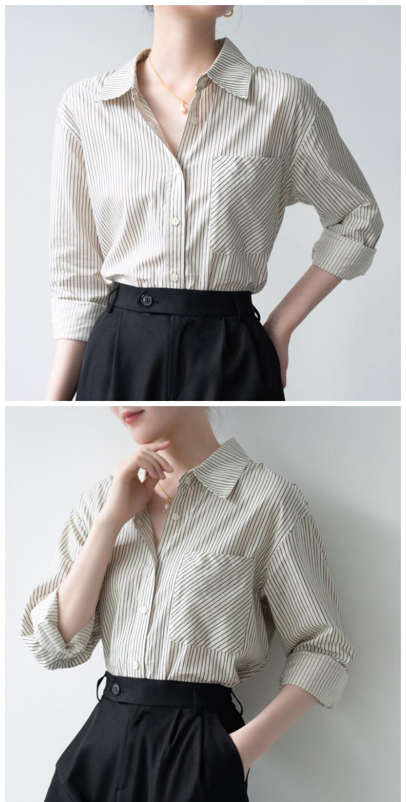 Camisa Rayada de Algodón de Fibra Larga para Mujer 2025 Primavera Nuevo Diseño Nicho Ol Commuter Casual Camisa en Capas