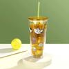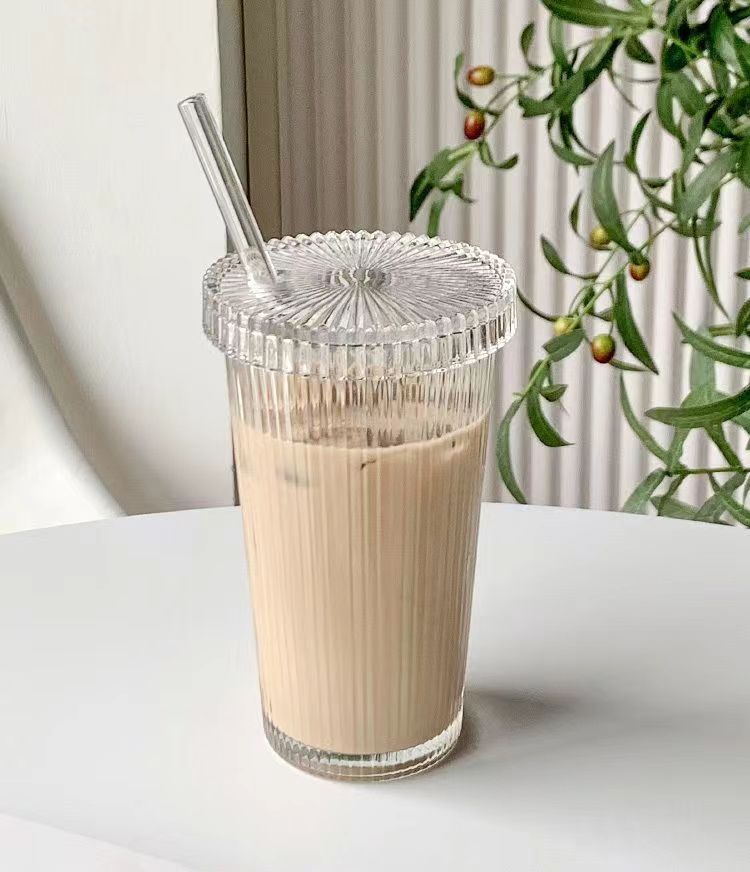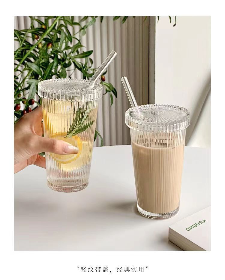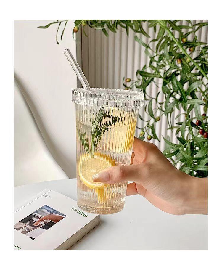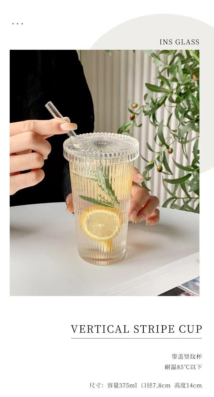 Vertical Stripe Water Cup Glass Cover Glass I Straw 380ml