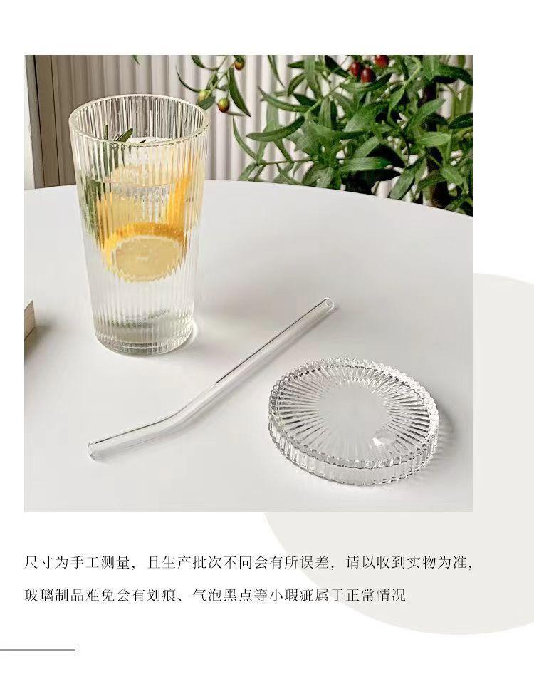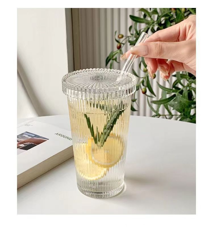 Vertical Stripe Water Cup Glass Cover Glass I Straw