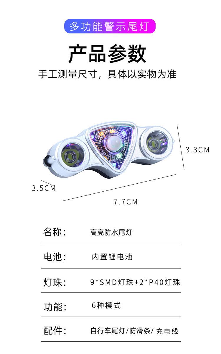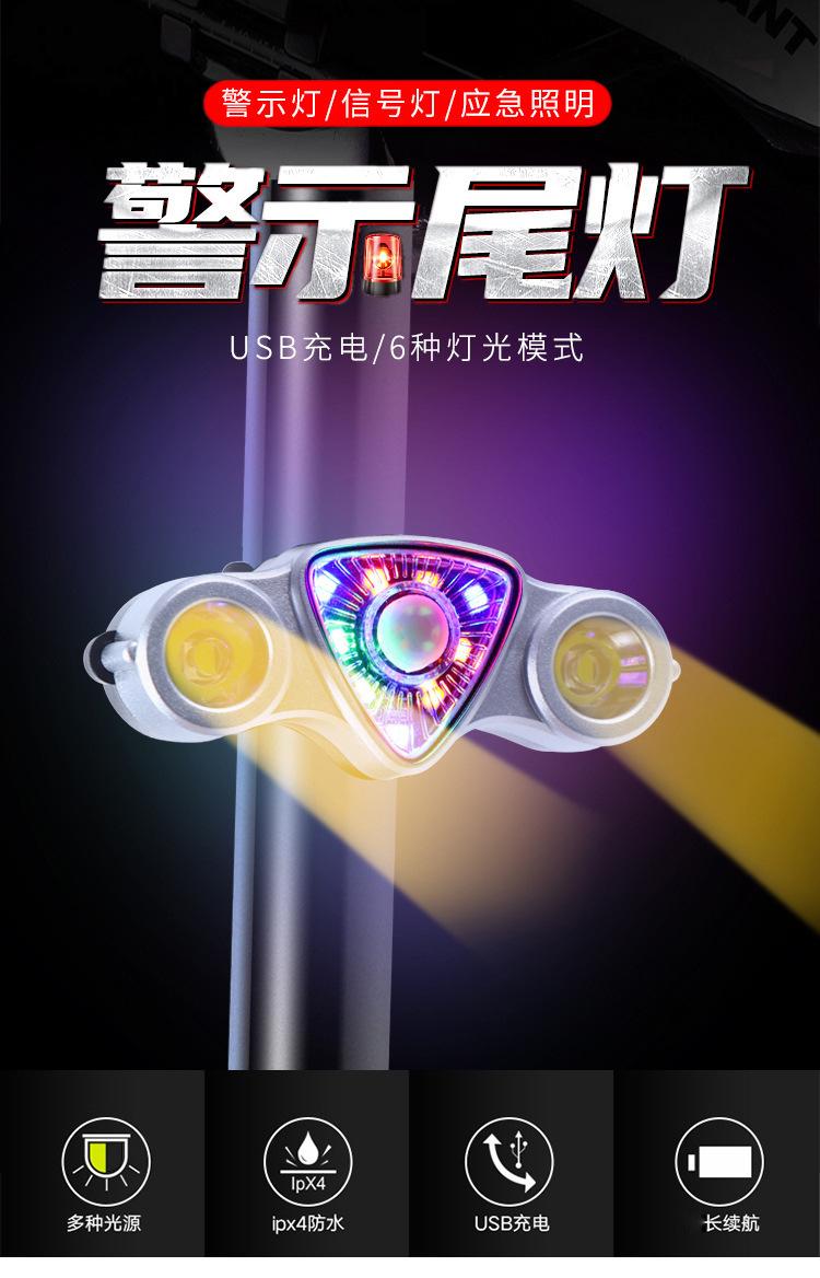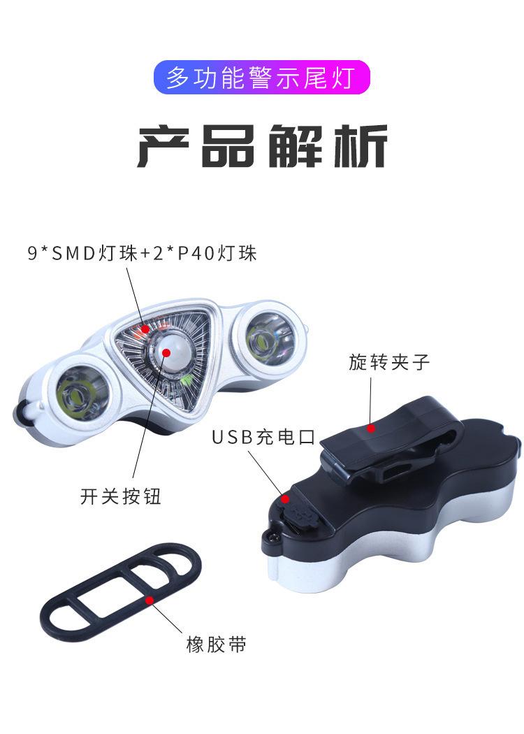 Luz Trasera de Bicicleta Carga USB Ciclismo Advertencia para Paseo Nocturno Carretera Bicicleta de Montaña Luz Trasera Colorida Accesorios para Bicicleta
