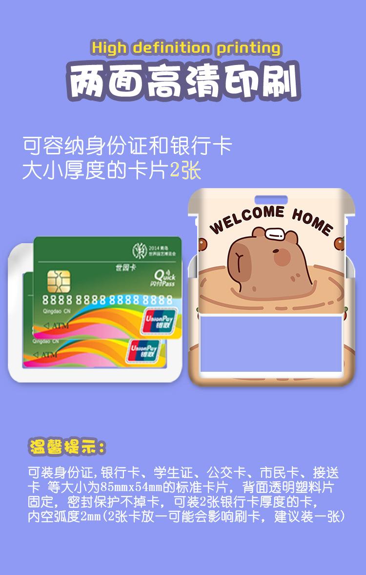 Juego de tarjetas de dibujos animados horizontales, tarjeta de entrega para estudiantes, juego de tarjetas de control de acceso al metro, juego de tarjetas Kabibala Capybara