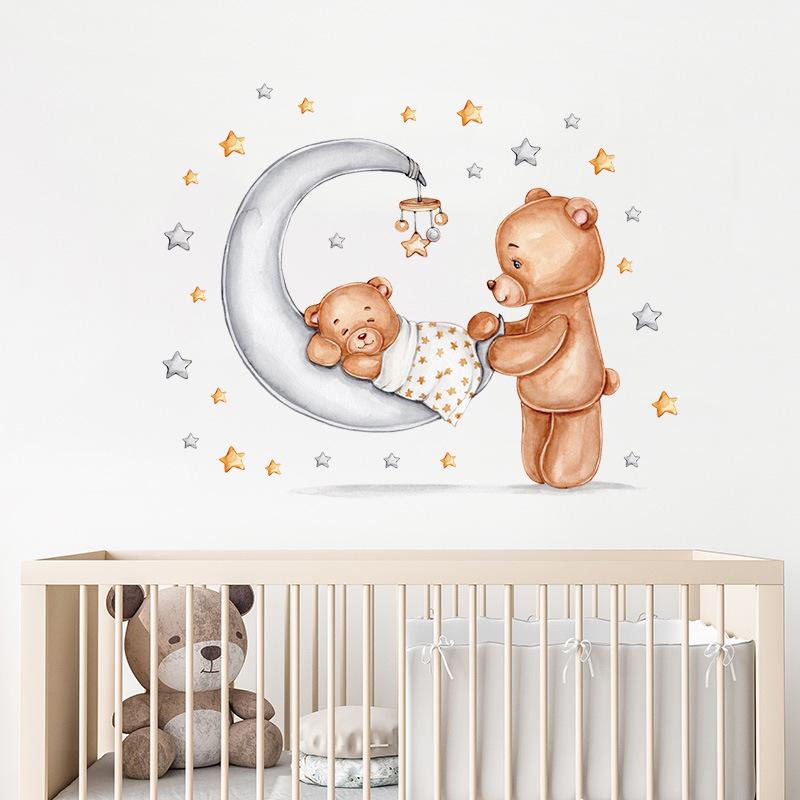 Cuna de Luna Lindo Oso Adhesivo de Pared Autoadhesivo Dibujos Animados Habitación Infantil Jardín de Infancia Decoración de Aula Pegatina Br64177
