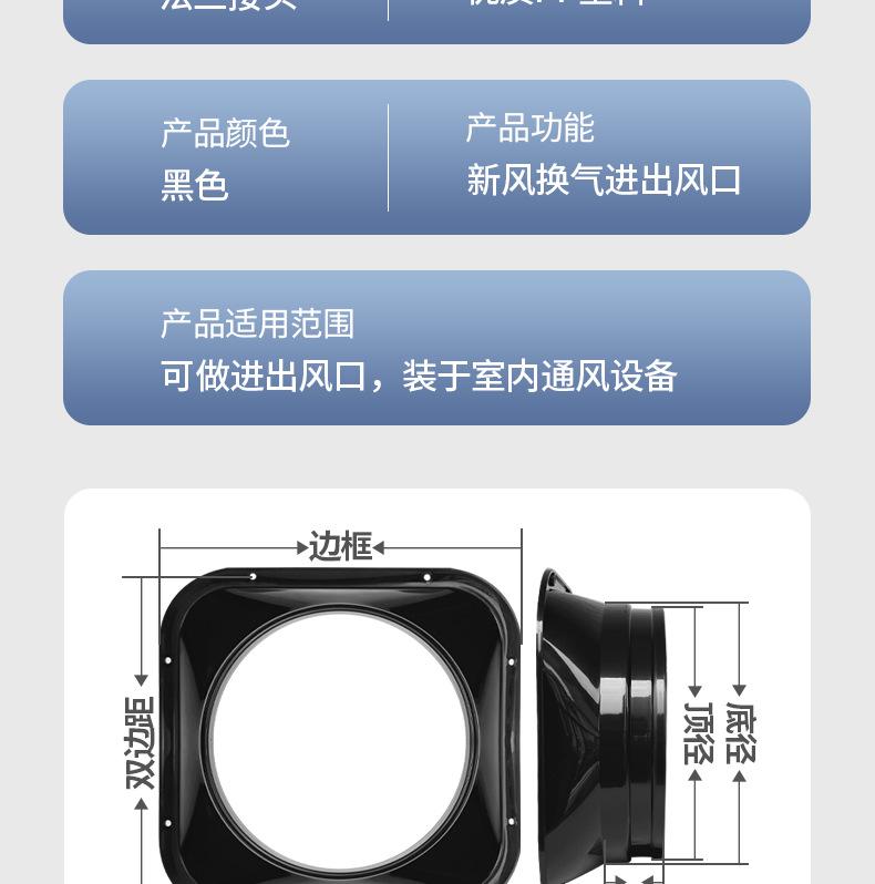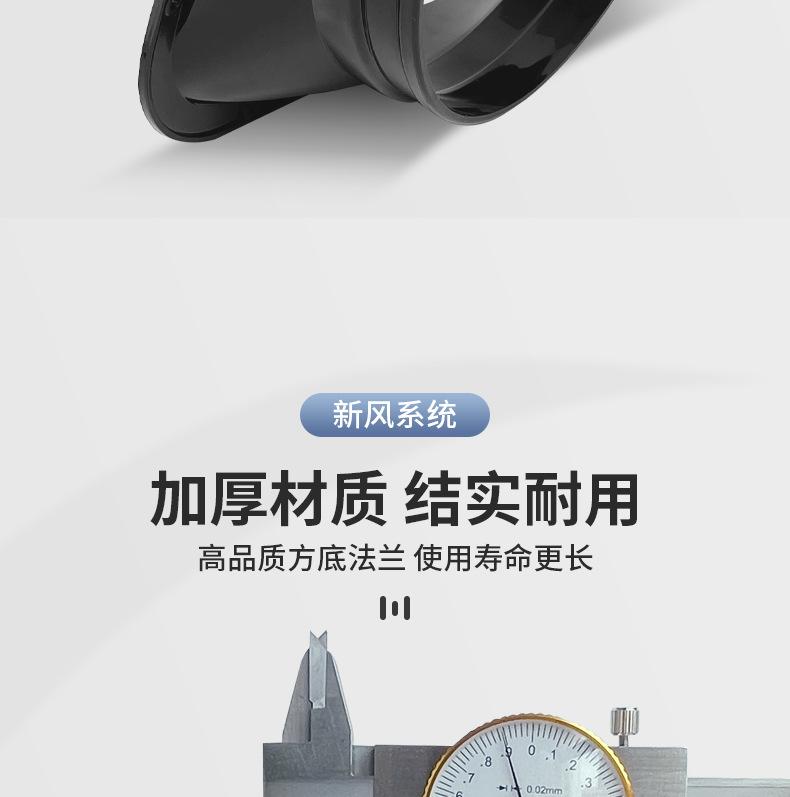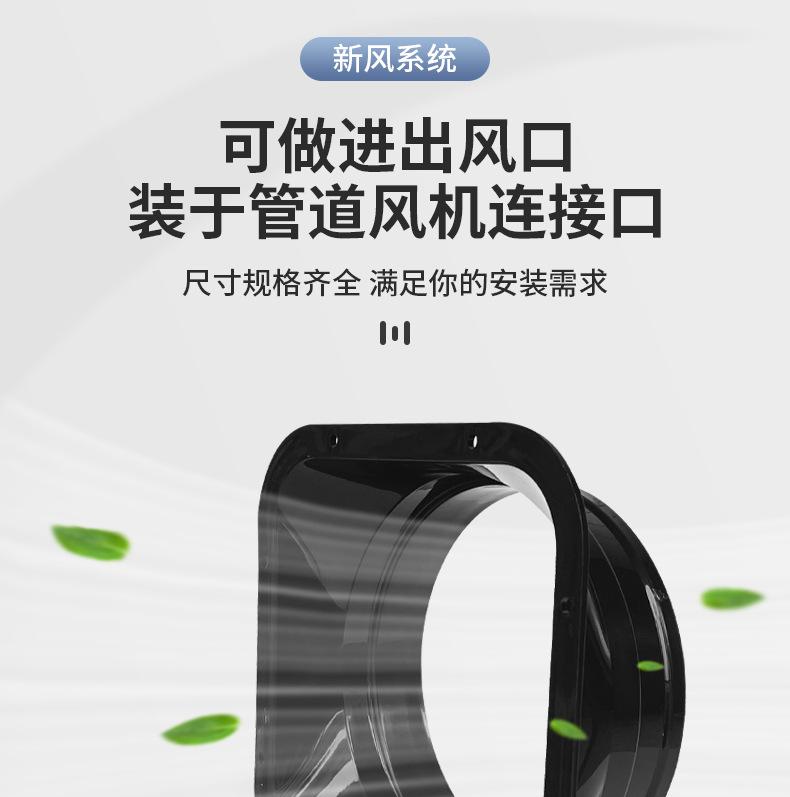 Interfaz de redondeo cuadrado de plástico Sistema de aire fresco Adaptador de tubería Brida de ventilador Junta Tianyuan Lugar Aire de escape