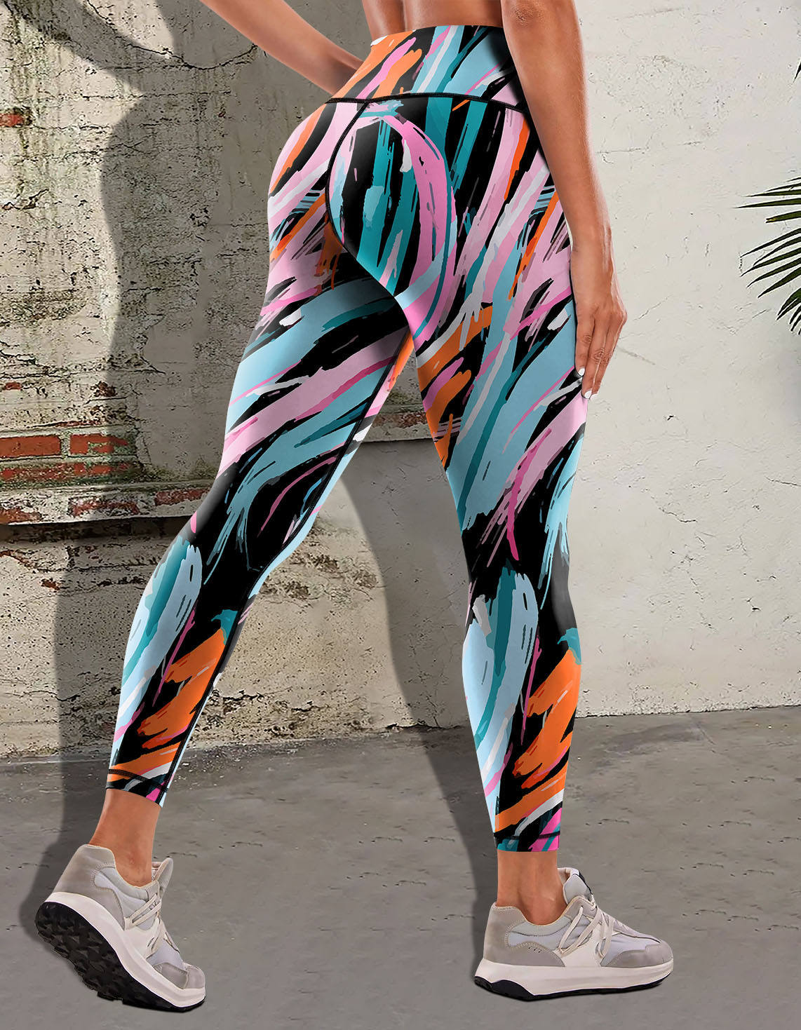 Pantalones de yoga con estampado transfronterizo para mujer, ajustados, elásticos, de cintura alta, para correr, deportes, fitness, ropa de yoga, pantalones cortos.