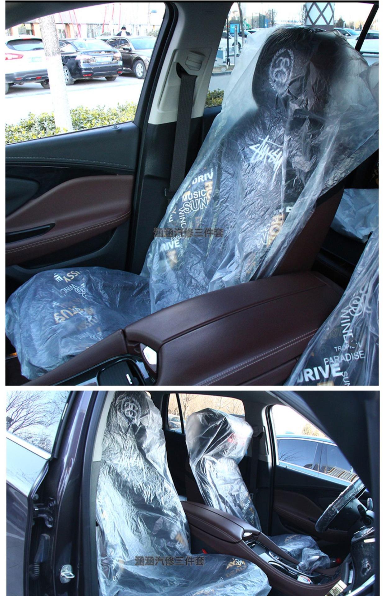 Funda de asiento desechable para coche, gruesa, de plástico, a prueba de polvo y agua, con cojín de tres piezas para reparación de automóviles, antiincrustante y mantenimiento.
