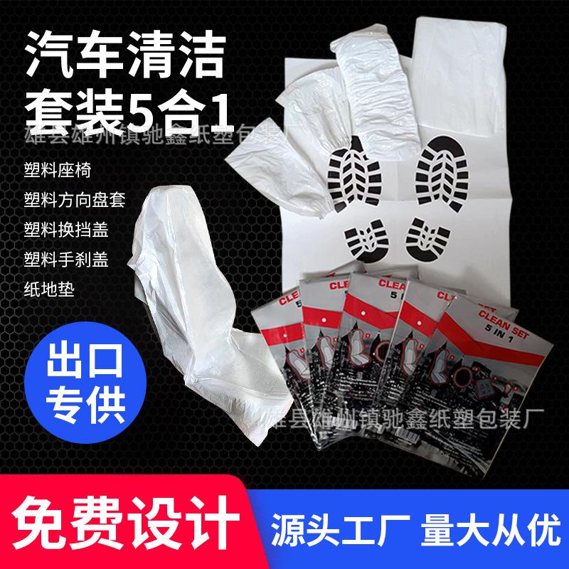 Juego de fundas desechables para asientos de coche transfronterizo, juego de cinco piezas universal, reparación y mantenimiento, impermeable, volante, reparación de automóviles, comercio exterior