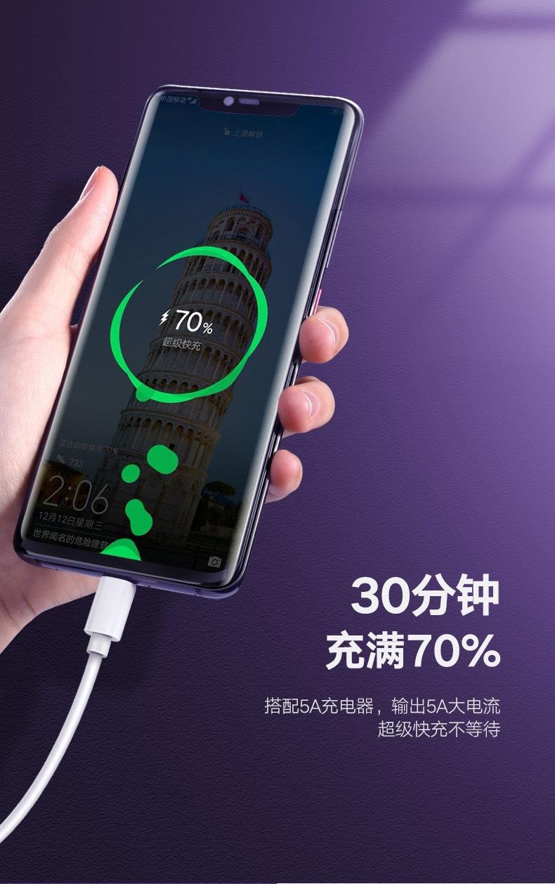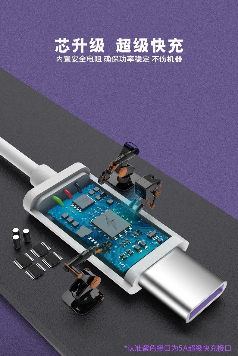 Cable de datos de carga súper rápida 5A para teléfonos móviles Huawei/Apple Android tipo C, línea de carga flash Millet, venta al por mayor