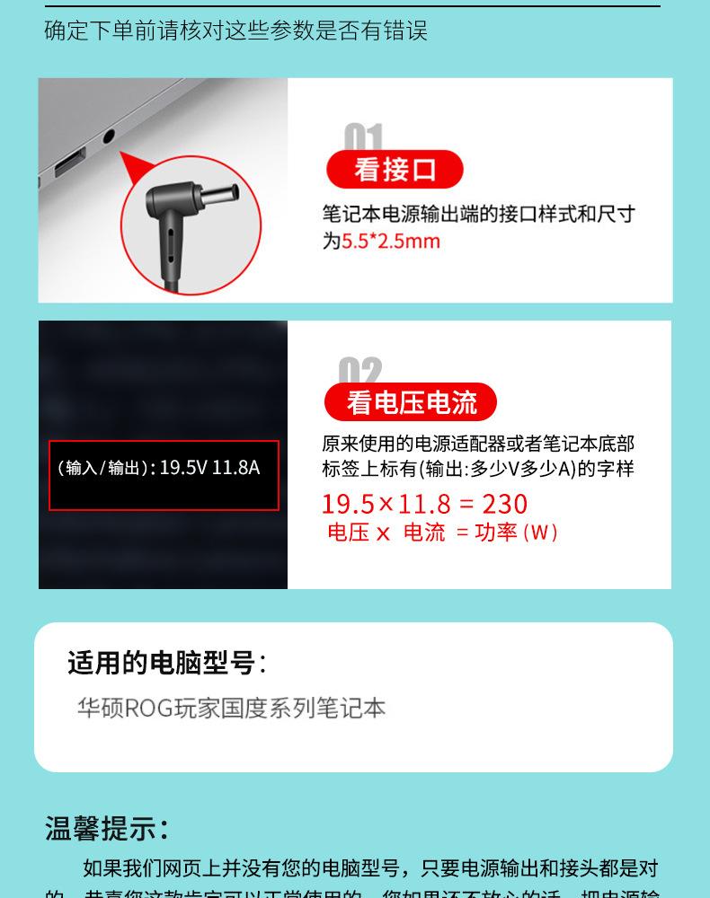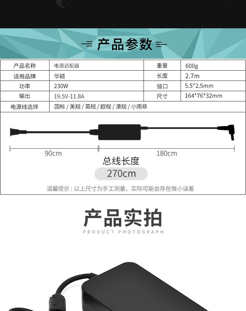 Compatible con el adaptador de corriente para portátil Asus de 230 W, interfaz de 19,5 V y 11,8 A, cargador de 5,5 x 2,5 mm.