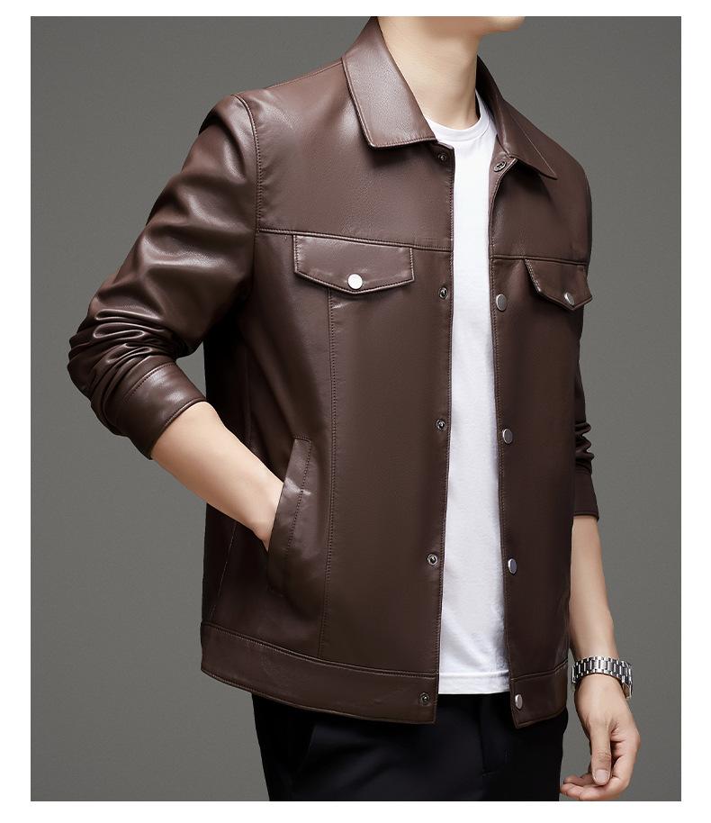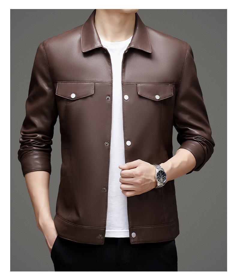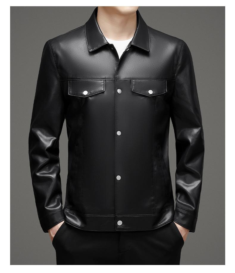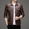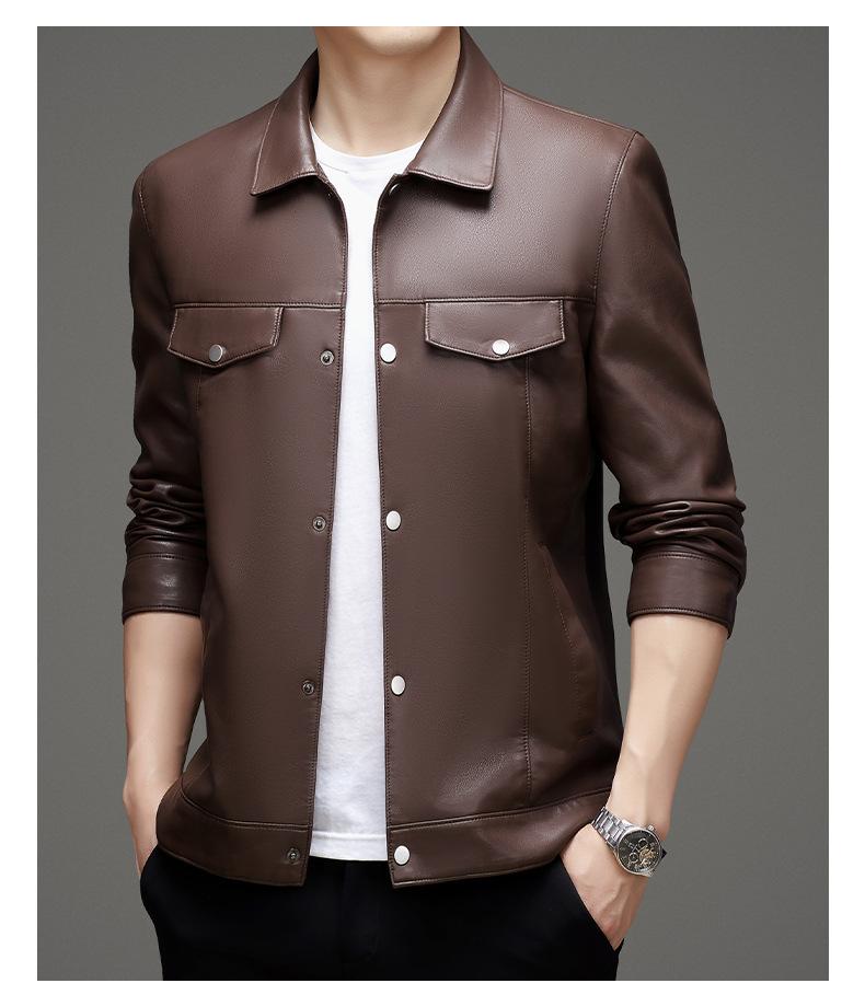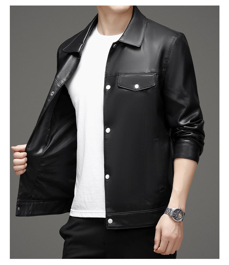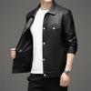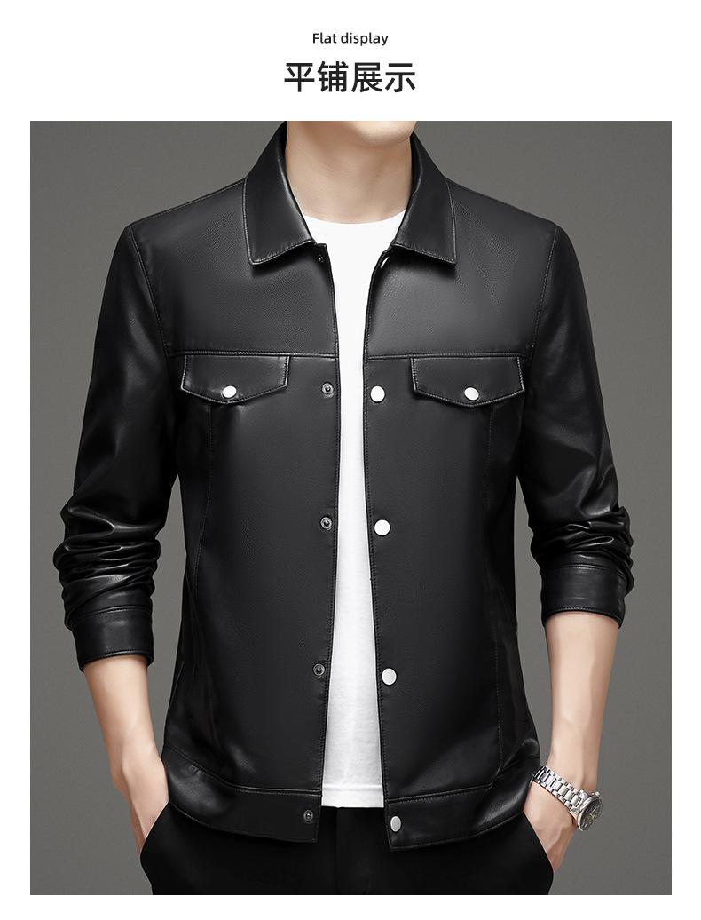 Primavera y Otoño Nuevo Haining PU Cuero Chaqueta Delgada de Cuero Puro para Hombre con forro polar Engrosada de Alta Gama Moderna Casual Clásica