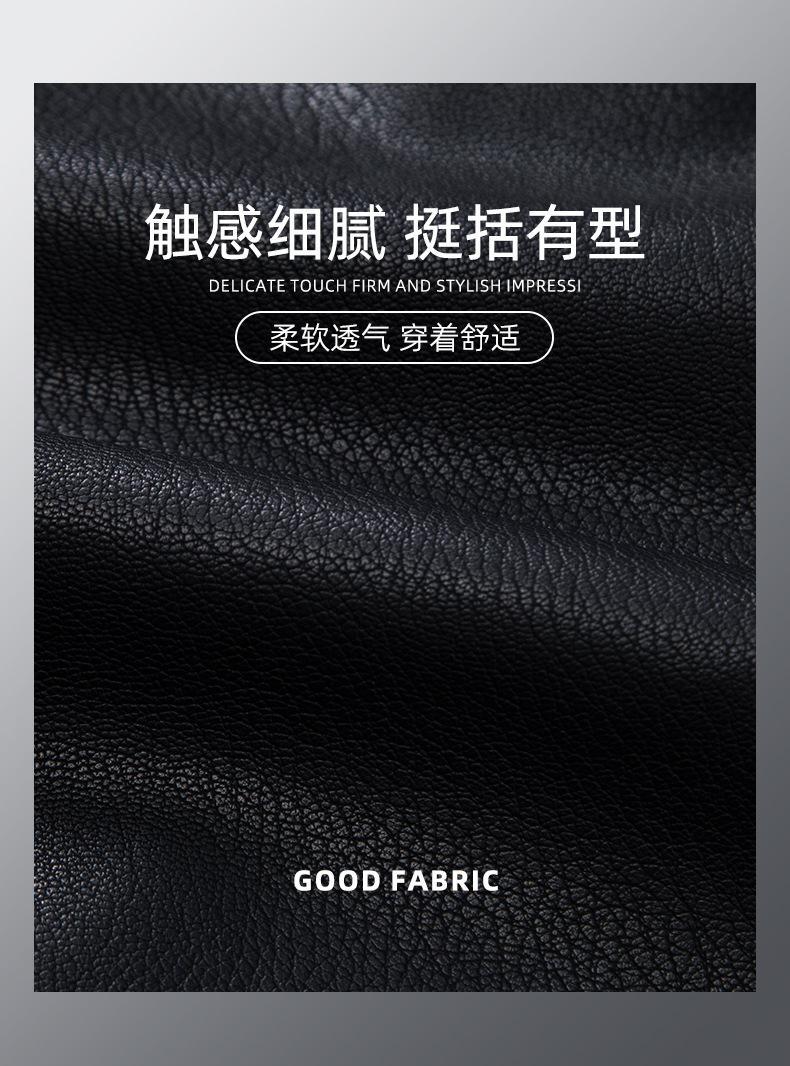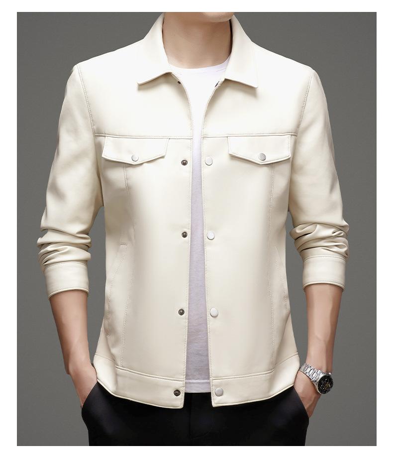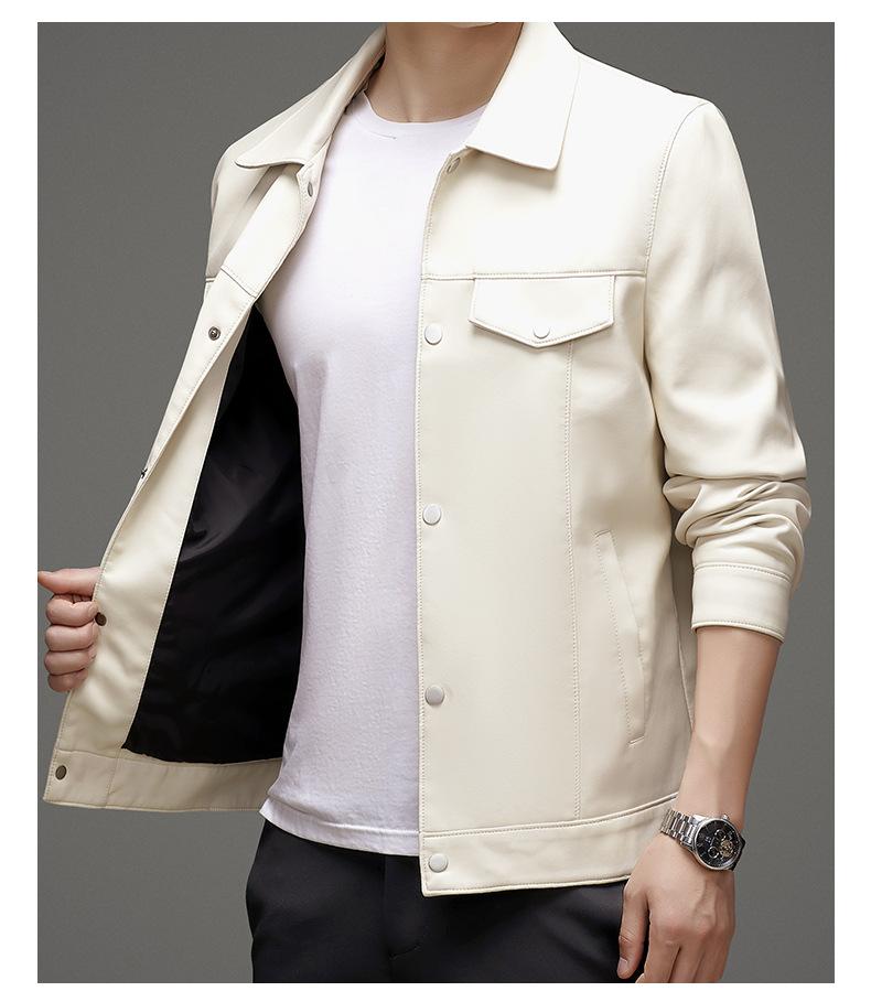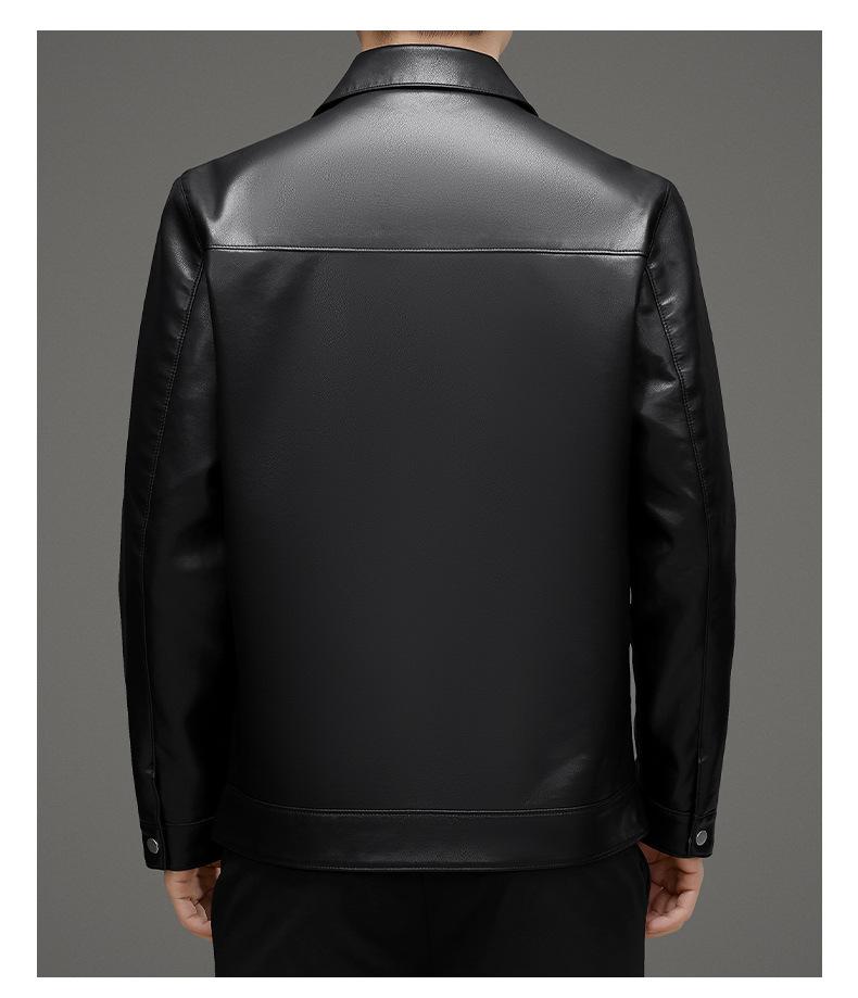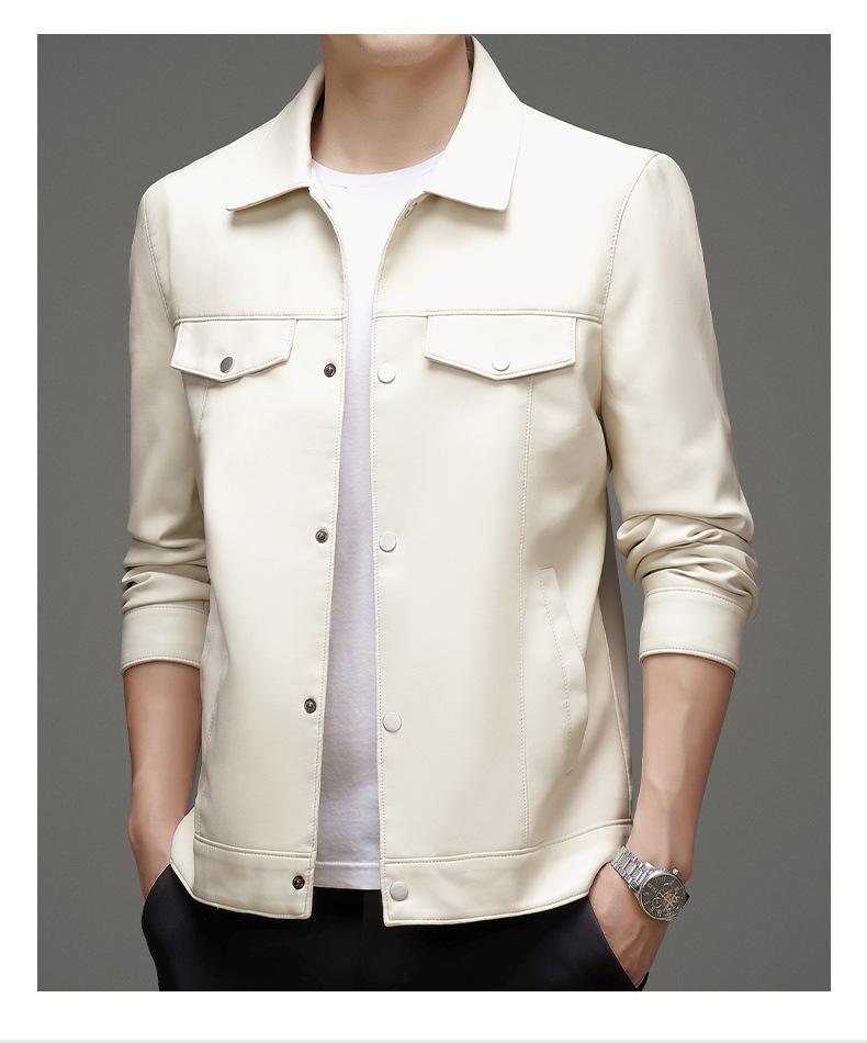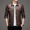 Primavera y Otoño Nuevo Haining PU Cuero Chaqueta Delgada de Cuero Puro para Hombre con forro polar Engrosada de Alta Gama Moderna Casual Clásica