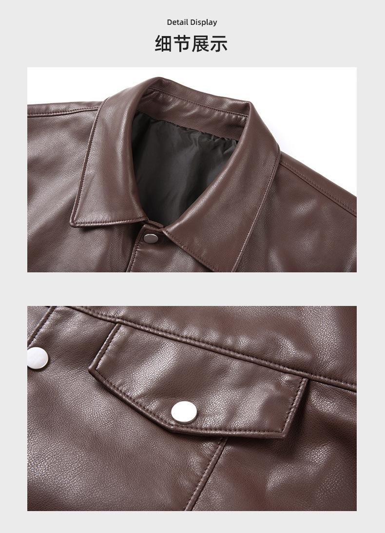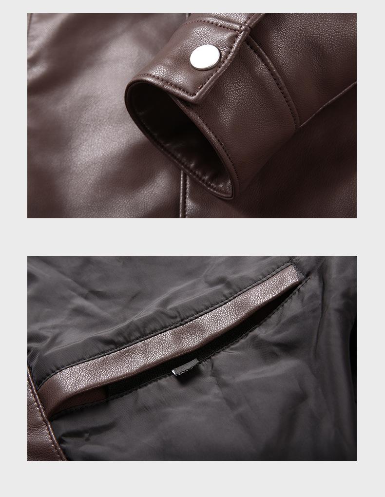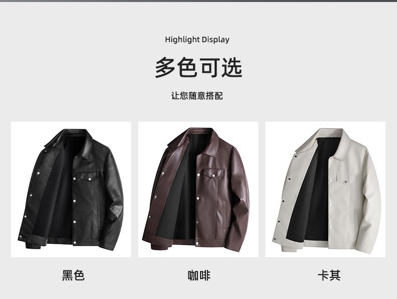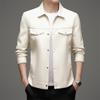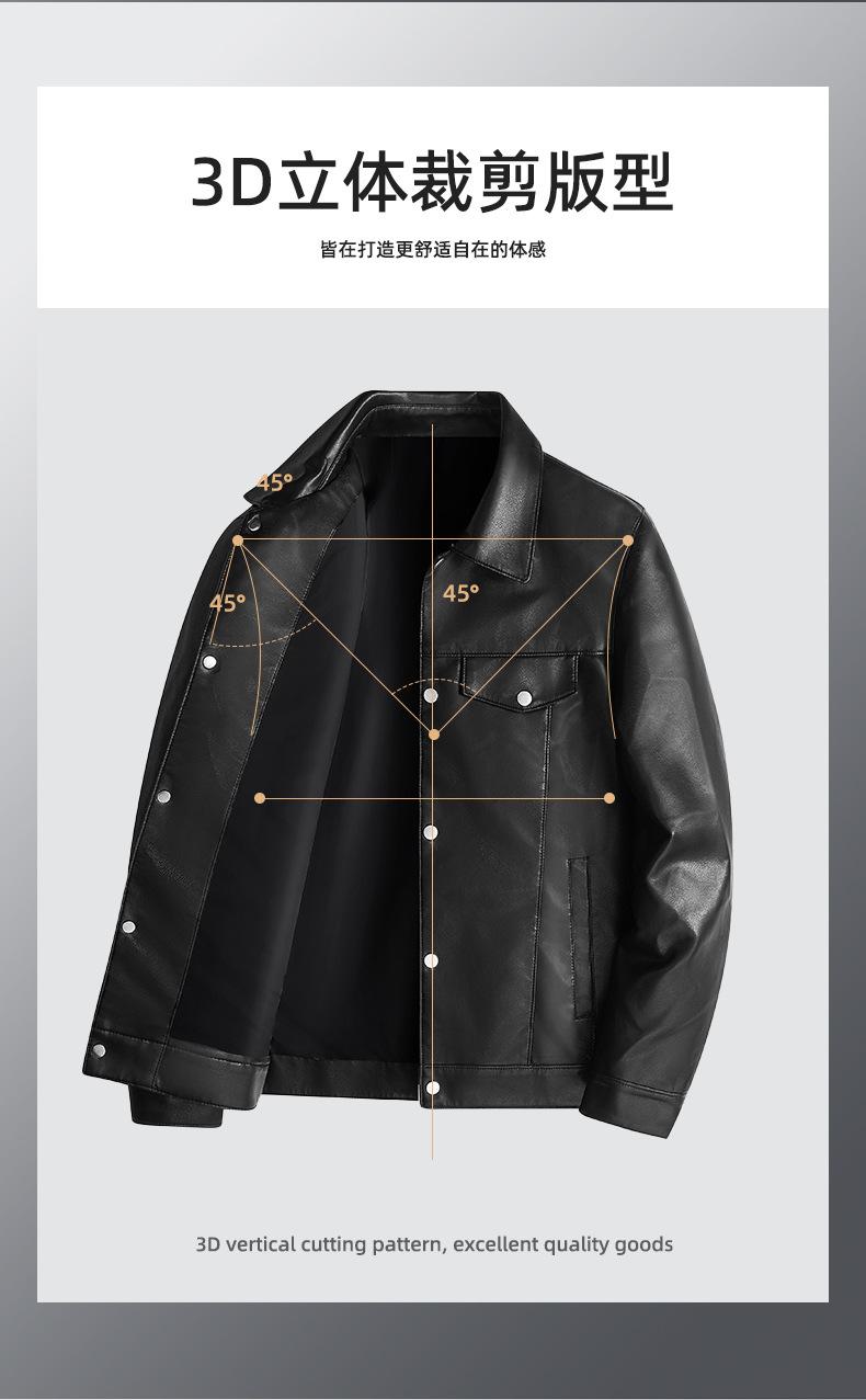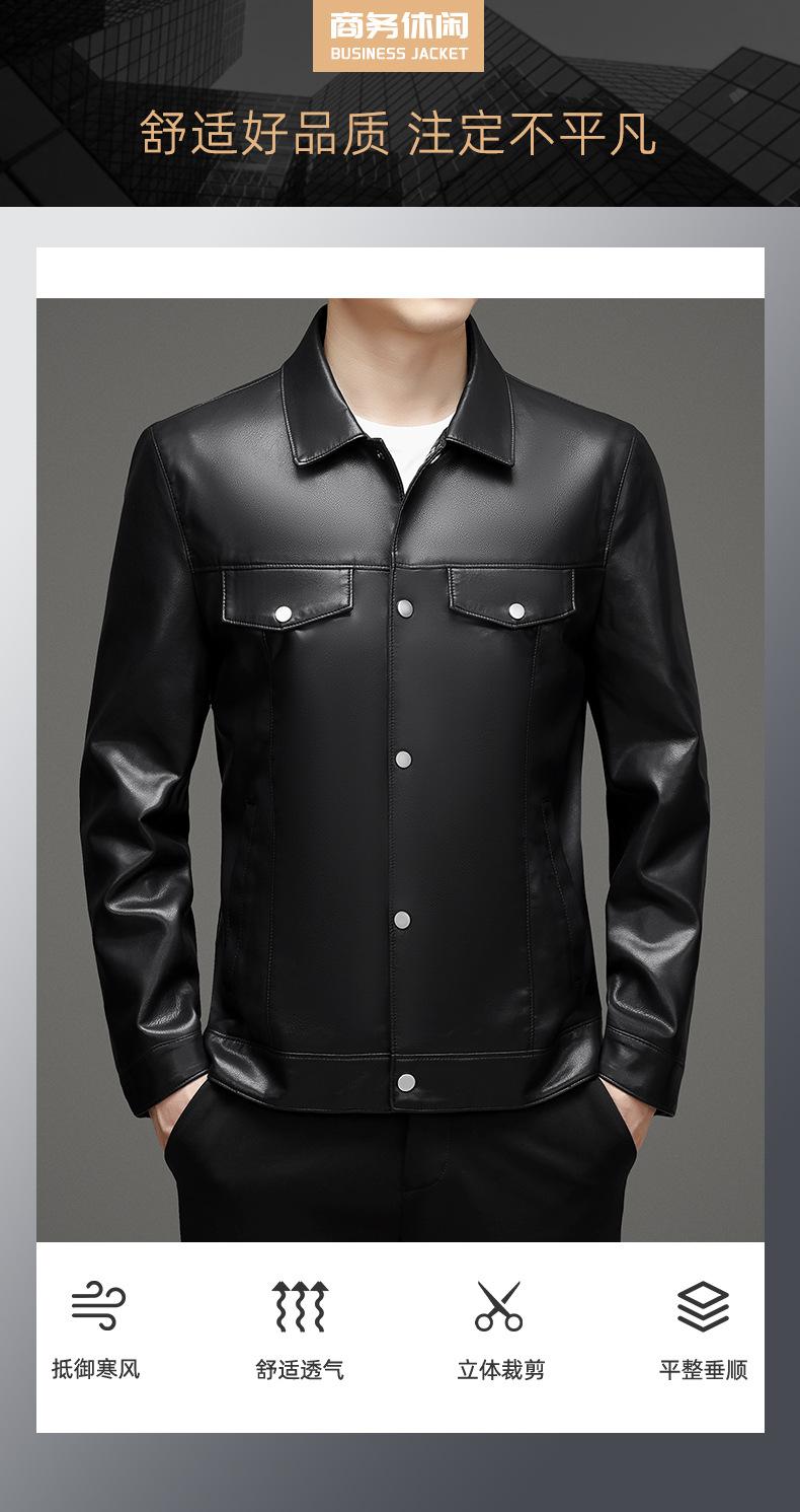 Primavera y Otoño Nuevo Haining PU Cuero Chaqueta Delgada de Cuero Puro para Hombre con forro polar Engrosada de Alta Gama Moderna Casual Clásica