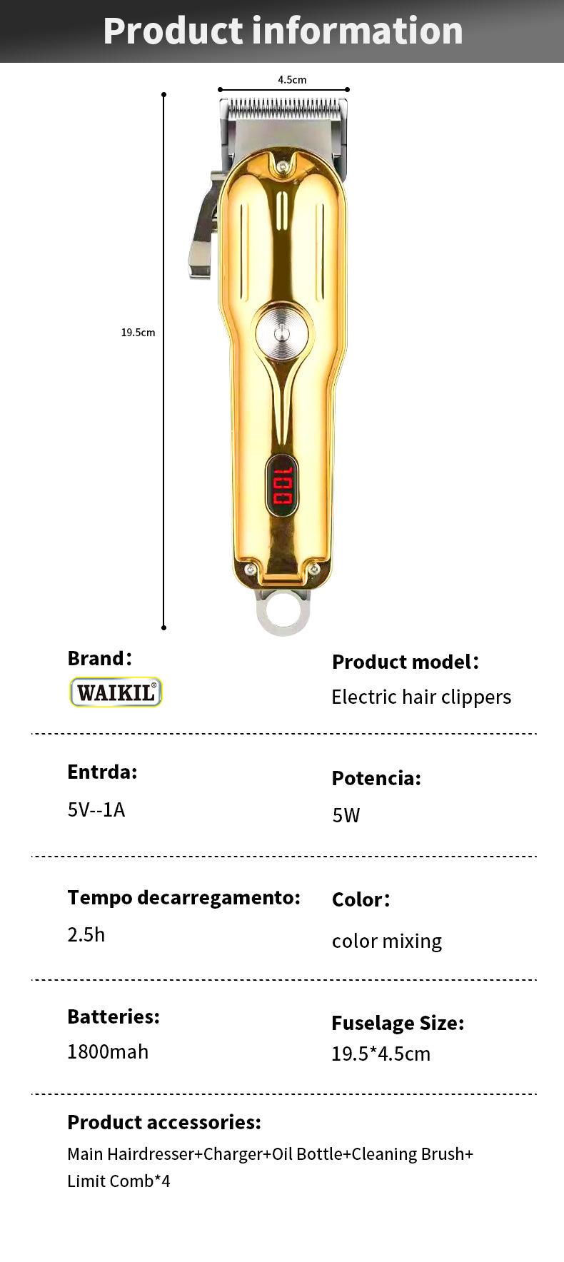 Cortadora de pelo eléctrica con pantalla digital LCD transfronteriza y carga USB, cortadora de pelo profesional para peluquería, herramientas para el cabello, cortadora de peluquero, cortadora eléctrica