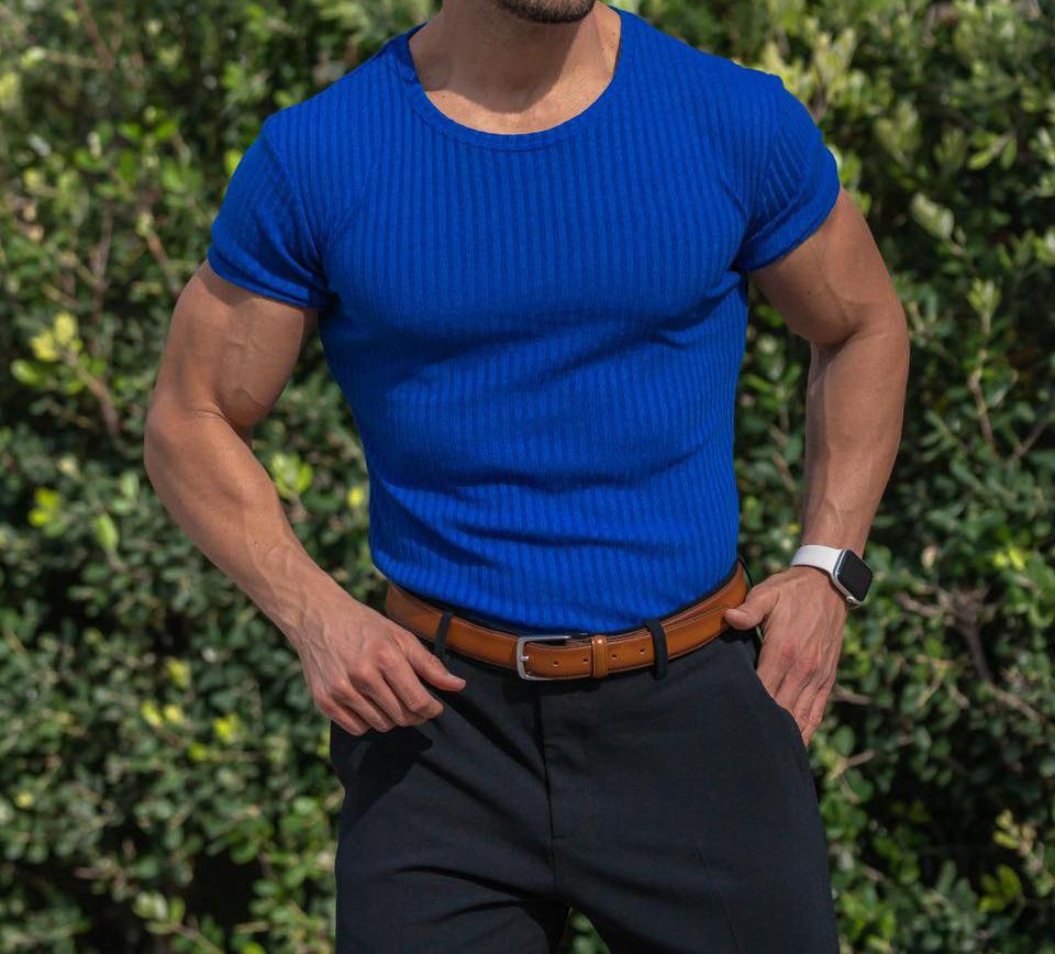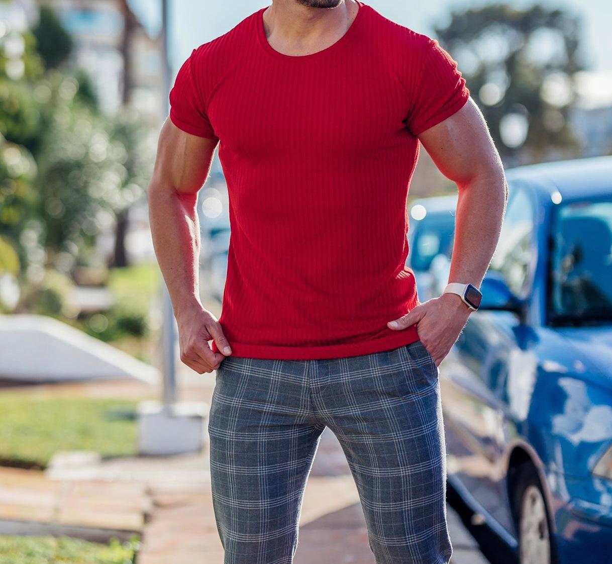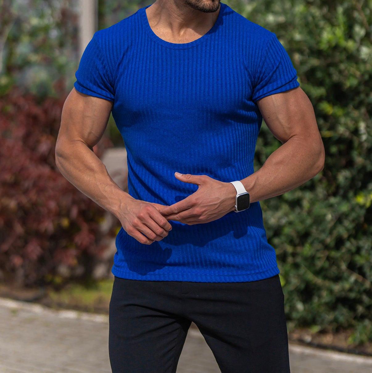 Camiseta de manga corta con cuello redondo y tiras verticales elásticas para deportes de verano y fitness para hombre, comercio exterior transfronterizo entre Europa y Estados Unidos