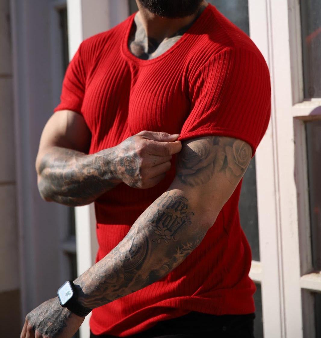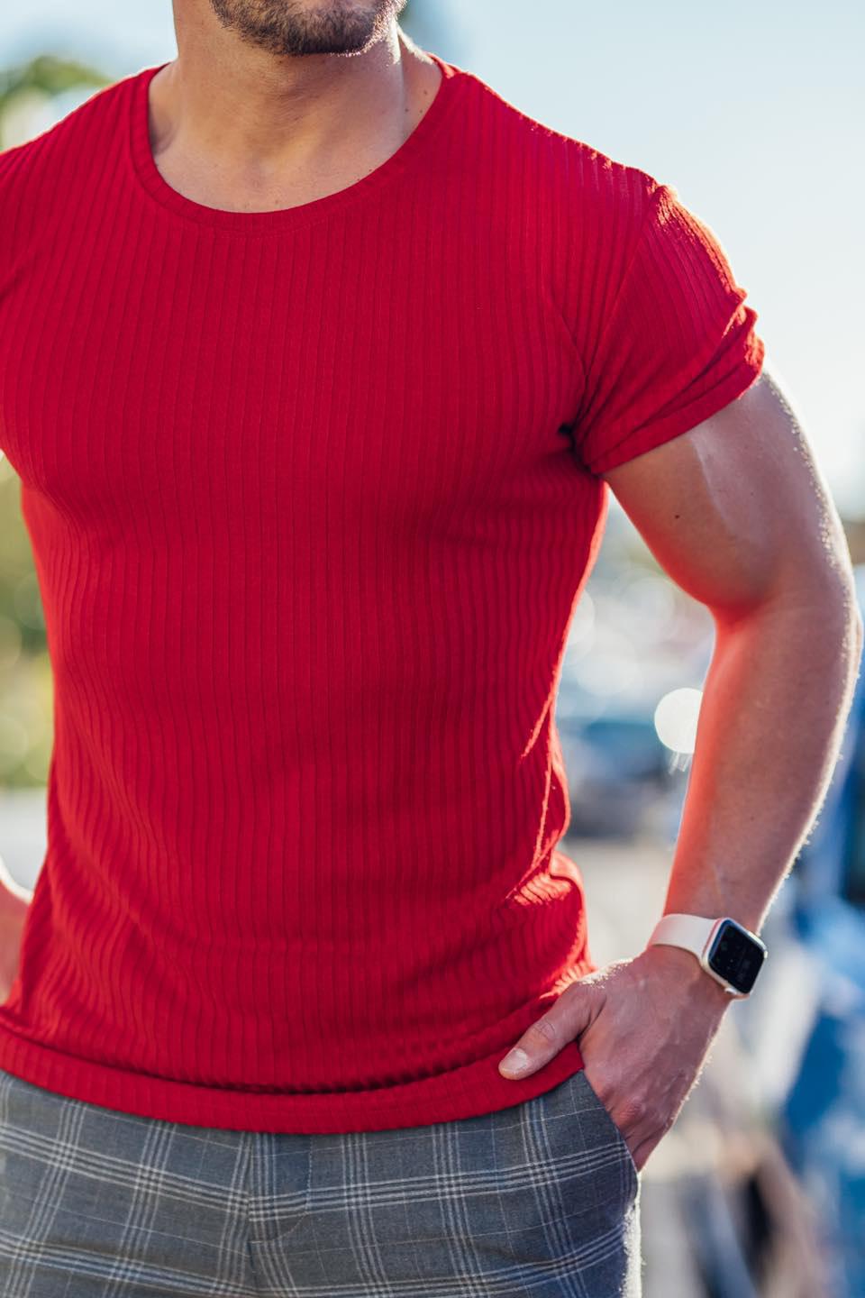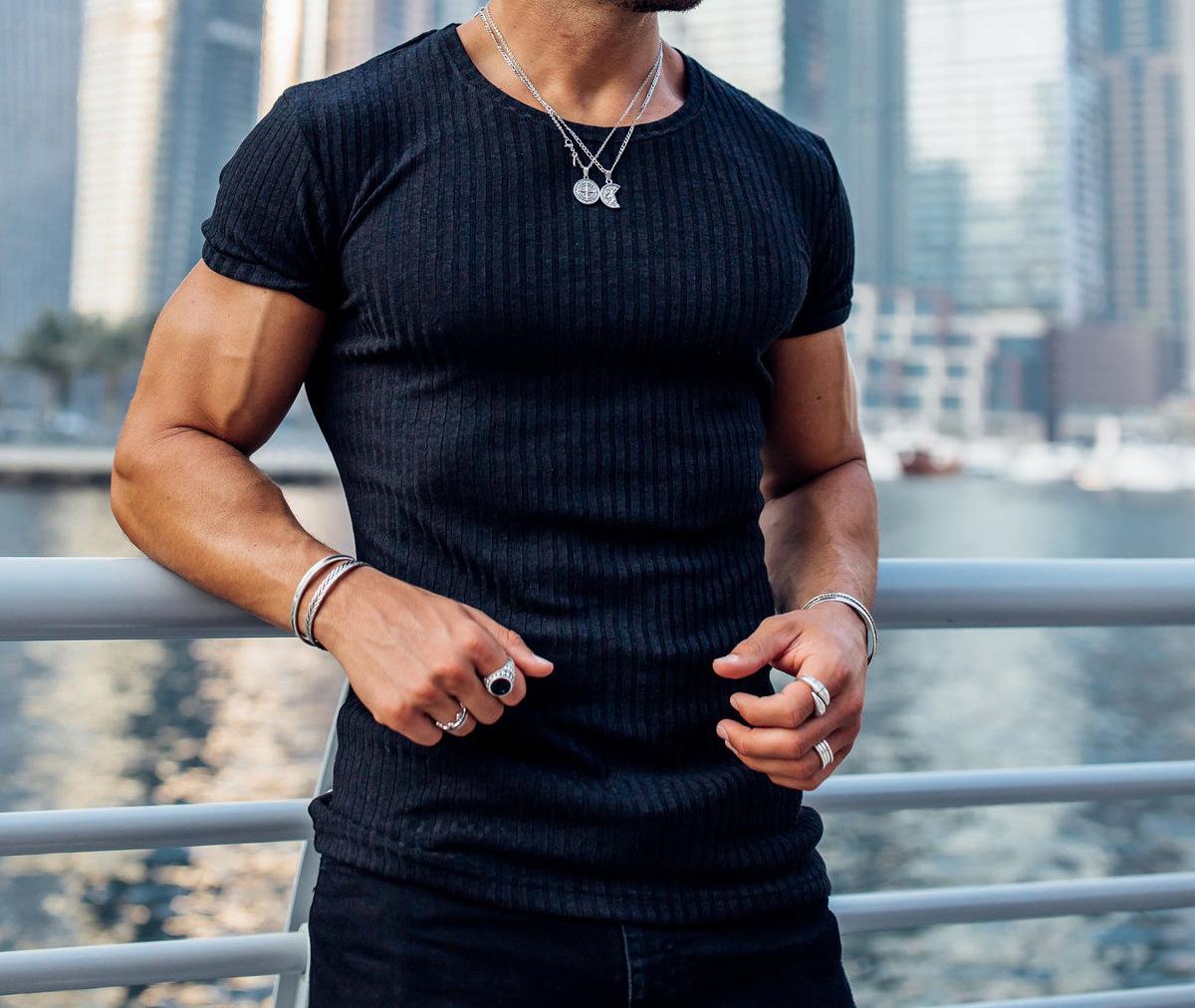 Camiseta de manga corta con cuello redondo y tiras verticales elásticas para deportes de verano y fitness para hombre, comercio exterior transfronterizo entre Europa y Estados Unidos