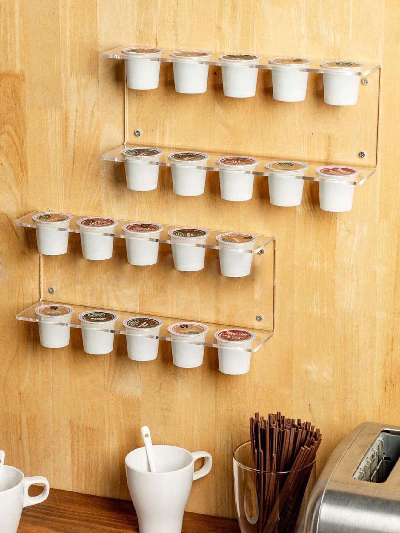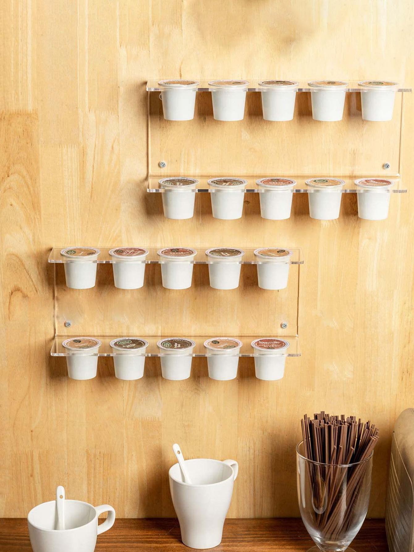 El estante de exhibición de almacenamiento de café en cápsulas de acrílico se puede colgar en la pared, acrílico transparente, para oficina, bar, cafetería, suministros