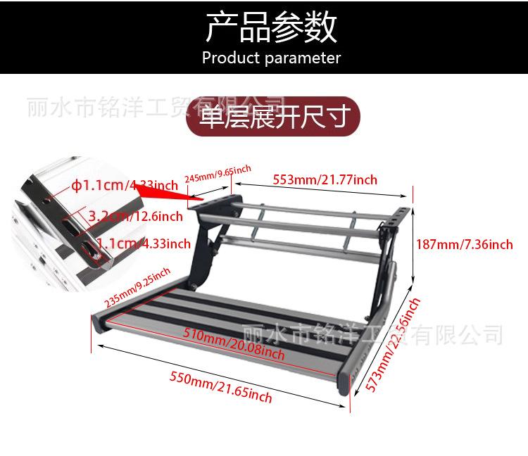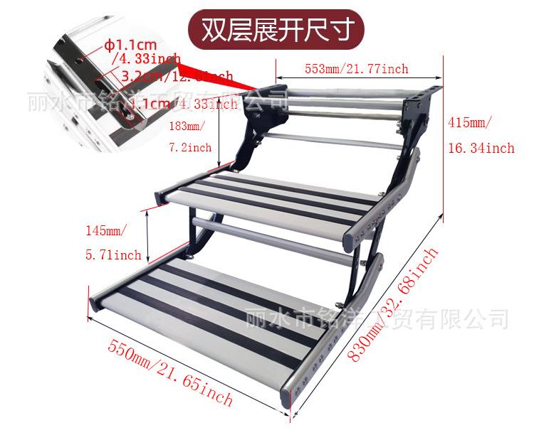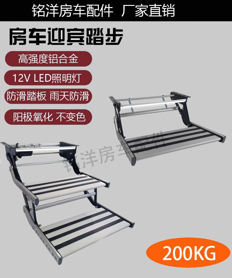 Escalón Plegable de Aleación de Aluminio para Autocaravanas, Escalón Manual de Remolque de una Capa, Escalón de Bienvenida de Doble Capa con Luz para Vehículos