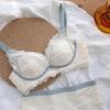 Nuevo conjunto de ropa interior de encaje bordado soluble en agua de estilo francés para mujer, sujetador ultrafino sexy con push-up pequeño y pecho grande.
