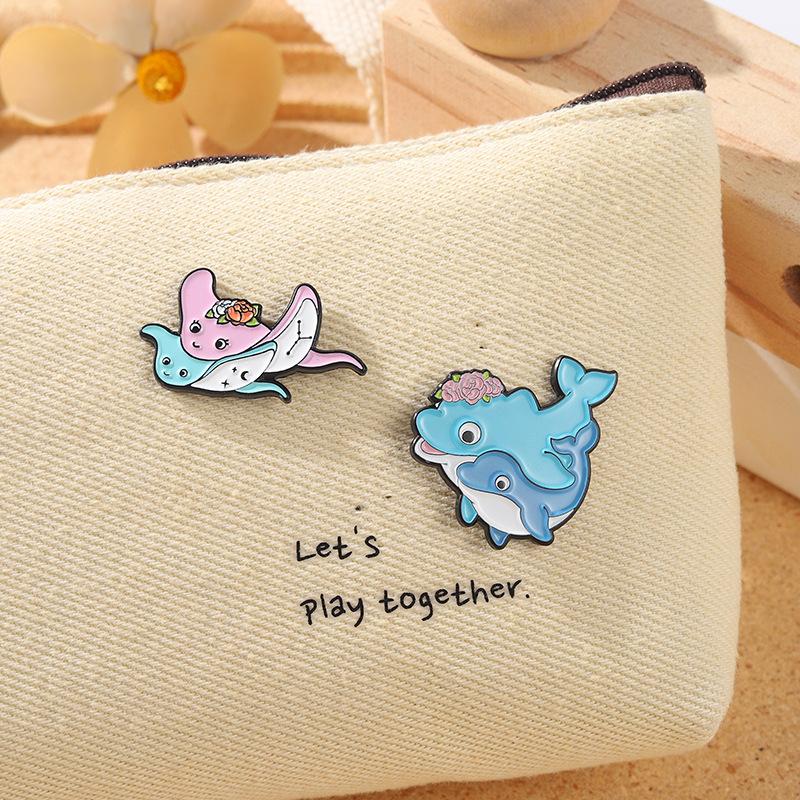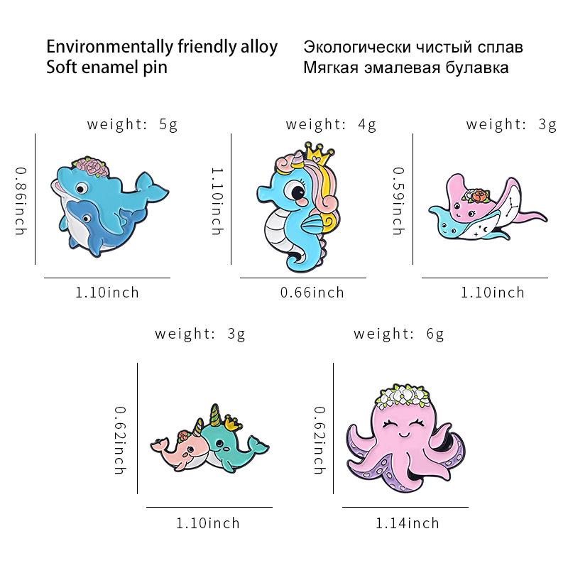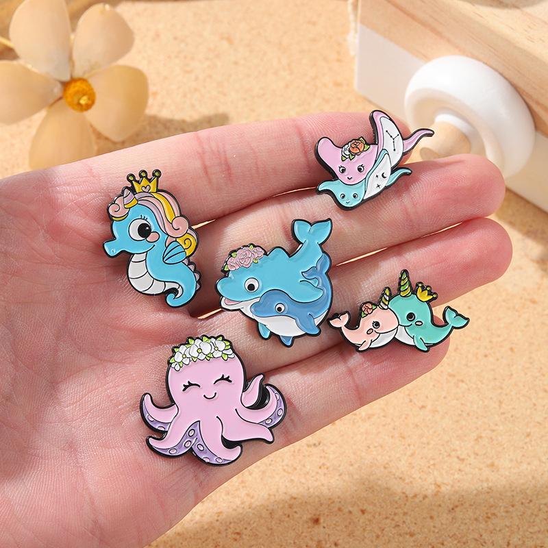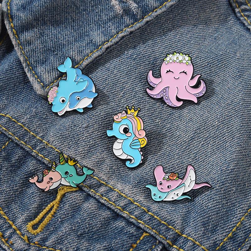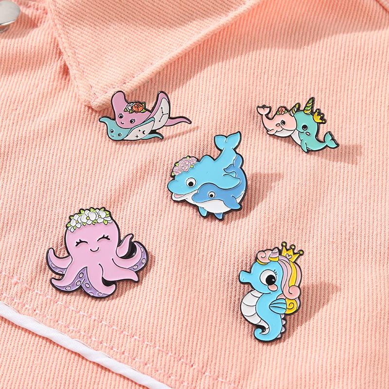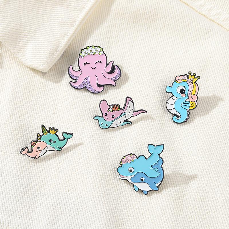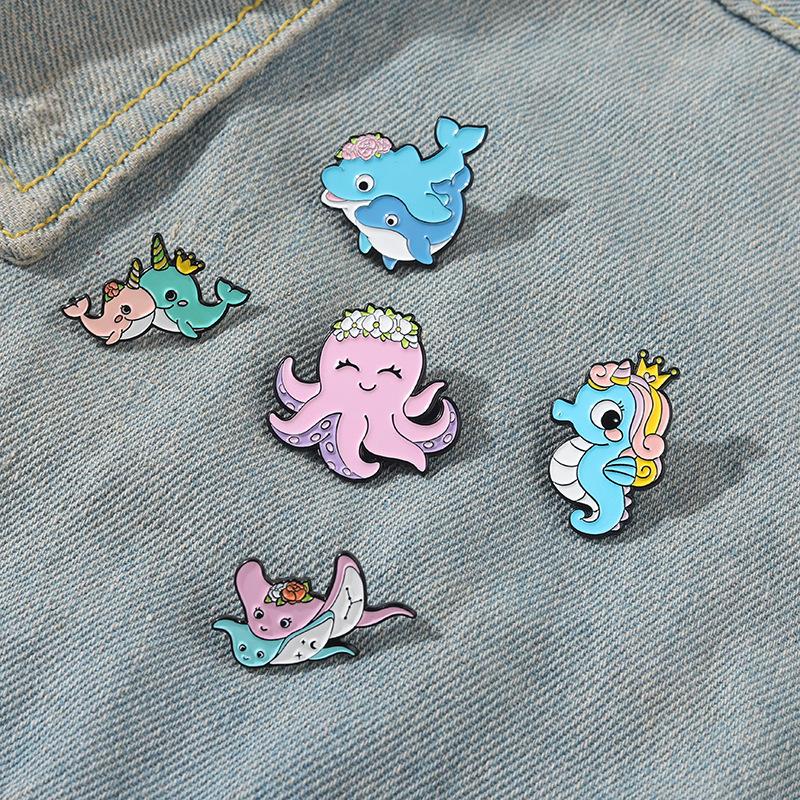Broche de Esmalte de Animal Marino Creativo de Dibujos Animados Forma de Pulpo Ballena Goteo de Aceite Insignia Mini Joyería