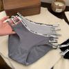 Ropa interior sexy linda con cinturón fino ahuecado de color sólido sin costuras para mujer de cintura media-baja cómoda para niña sin costuras
