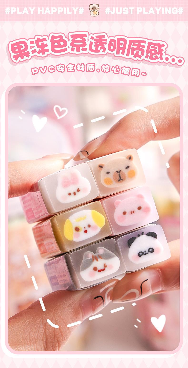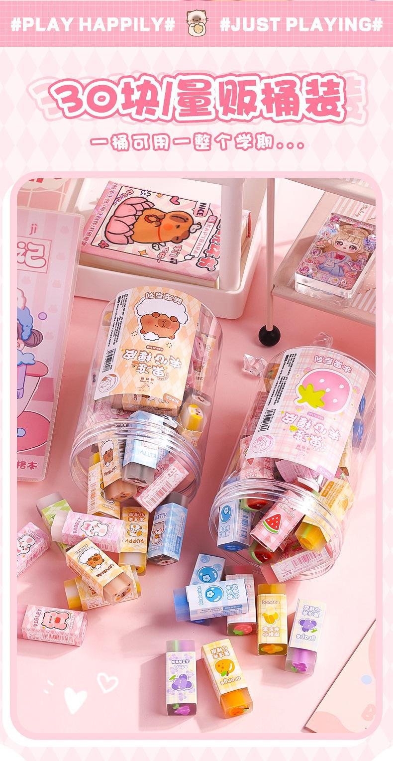 Barrel filled rubber—poozi soda, Barrel filling rubber—cute pet series, Barrel filling rubber—fruit series, Ba...