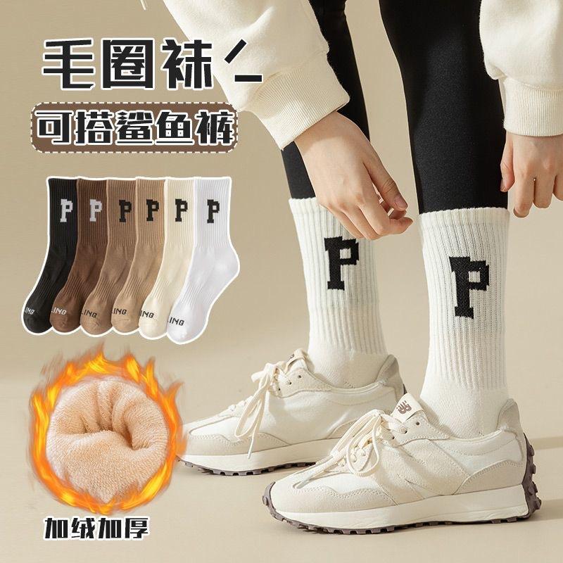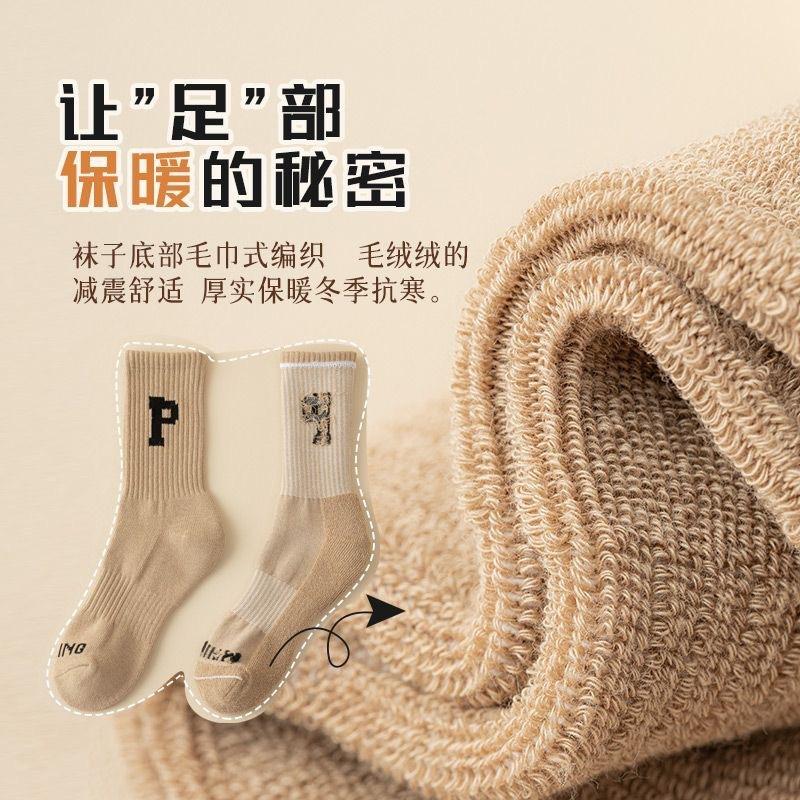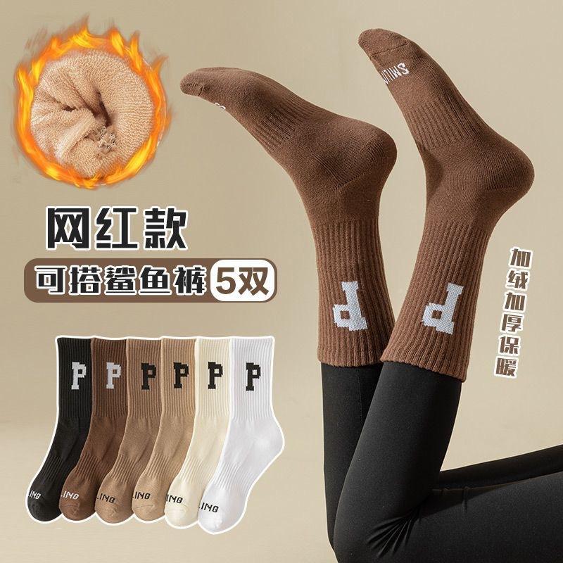 Calcetines gruesos de felpa con forro polar para niños y niñas, otoño e invierno, letras de celebridades de Internet, calcetines casuales hasta media pantorrilla con pantalones de tiburón cálidos