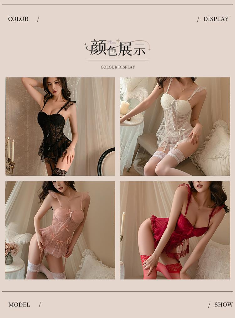 El amor es como la diversión, ropa interior sexy, camisón estilo francés, chaleco de encaje con almohadillas para el pecho, conjunto de lazo 5518