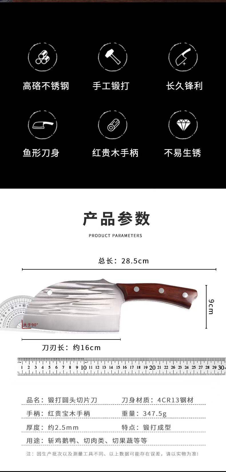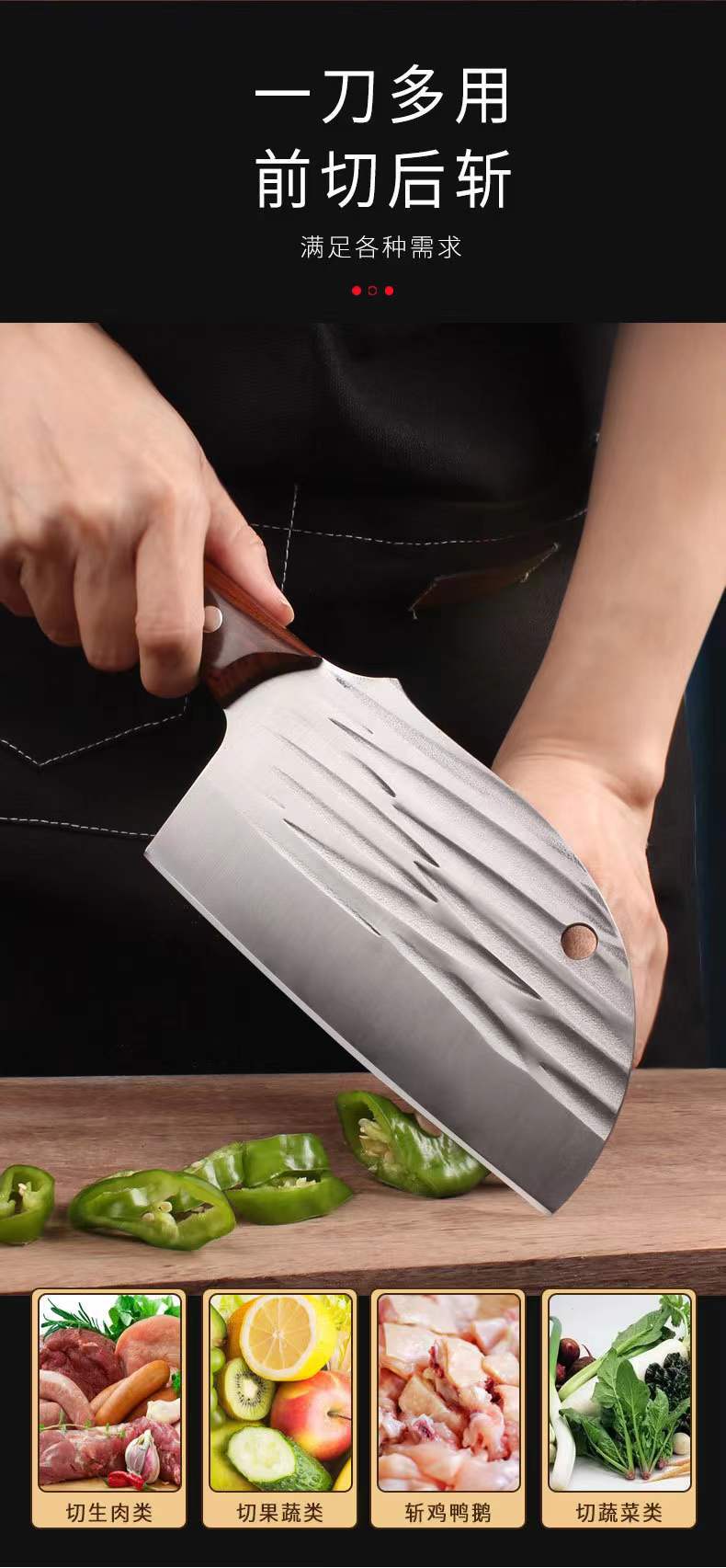 Cuchillo de cocina forjado con mango de tesoro rojo, cuchillo de cortar de acero inoxidable para el hogar, cuchillo especial para cortar carne de chef, cuchillos de cocina