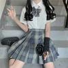 Haohai Short Sleeve Grape Soda Plaid Skirt Bow Ties