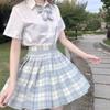 Falda plisada de uniforme japonés JK, estilo universitario, camisa de manga corta básica, disponible de fábrica, cabello liso.