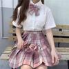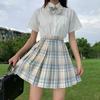 Haohai Short-sleeved Ice Cream Plaid Skirt Bow Ties